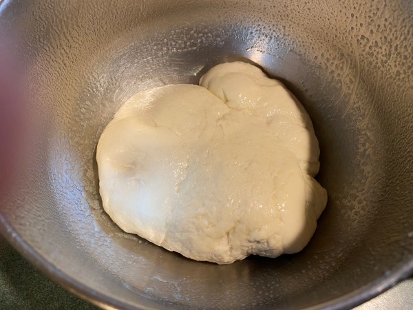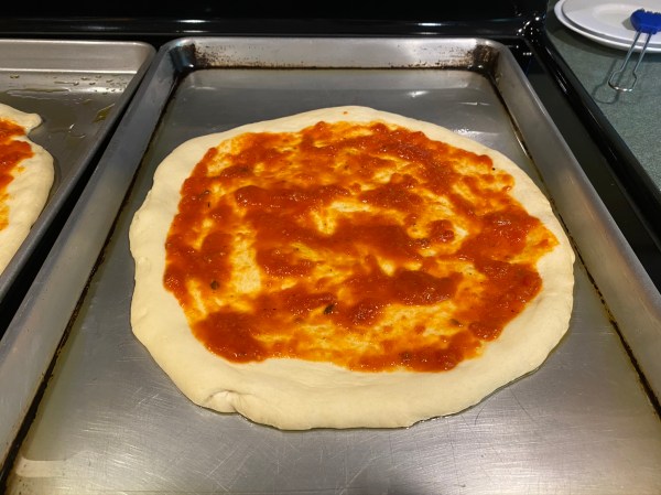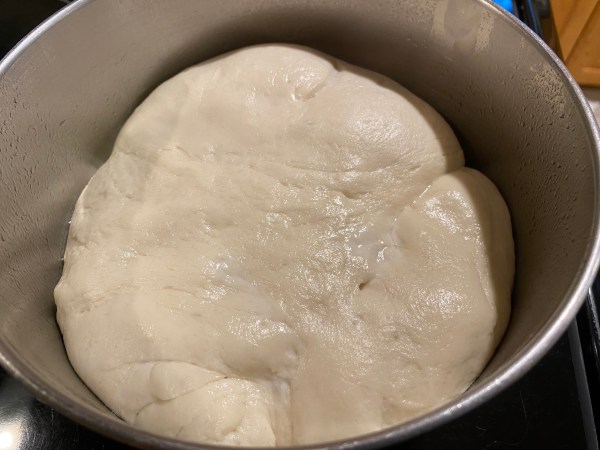 After you have reached your desired size, let the dough rise until it’s a little puffy. This can take up to an hour, depending on the temperature of your kitchen.