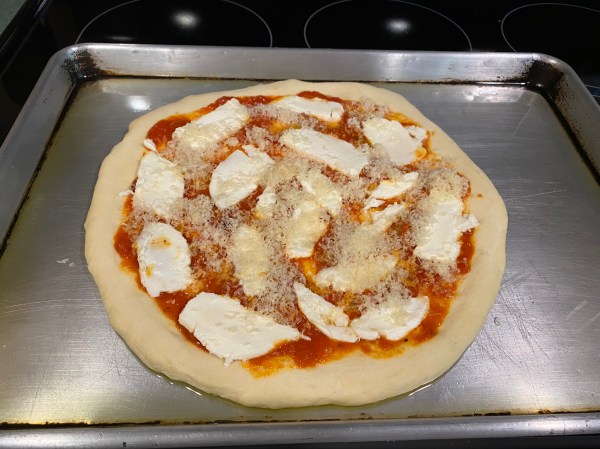 And about 1/4 cup of finely shredded Parmesan cheese, for each pizza, what ever your favorite is, I like Stella.
