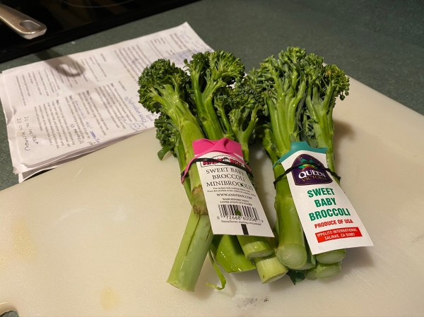 1 bunch Broccolini, finely chopped (or 5 ounces spinach, which I have done and is very good or 1 large broccoli floret)
