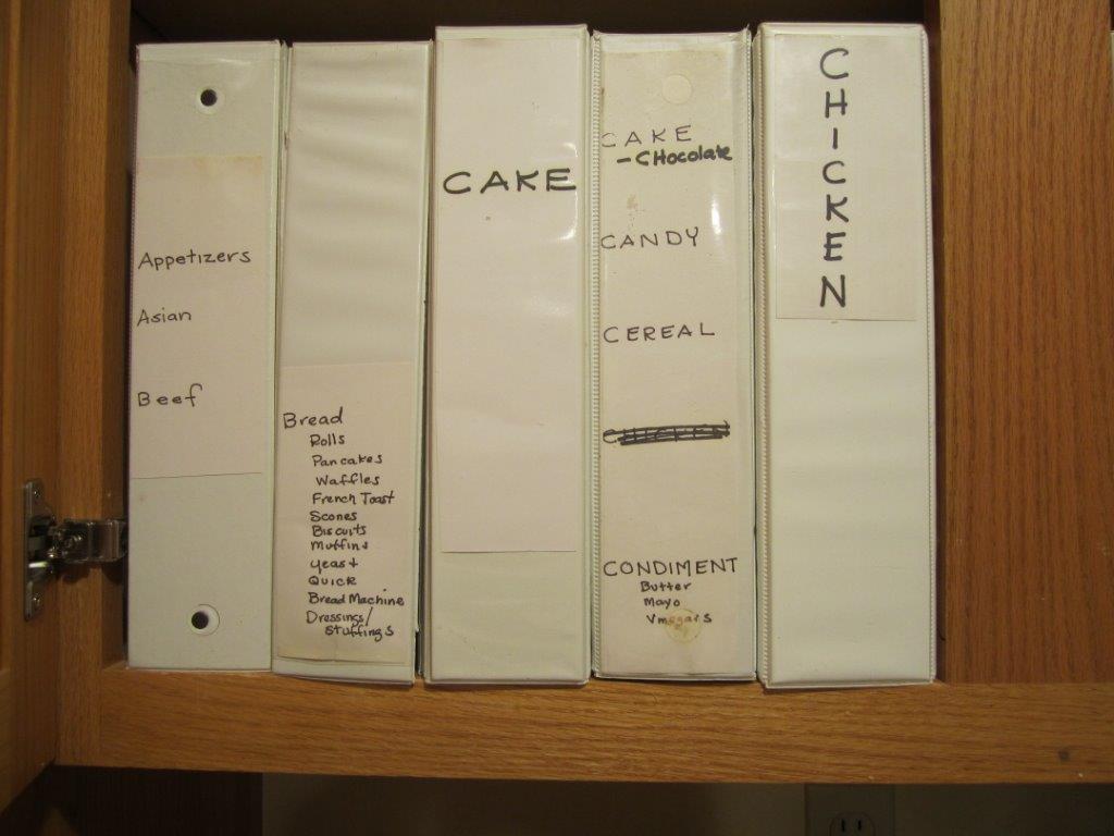To get my ‘cookbooks’ together was extremely tedious. I did it one winter. One very long winter…..! I had outgrown my little file cabinets and was finding them annoying to use. I wanted books. So I got binders, sheet protectors and dividers and just started. I did it for a couple of hours almost every night, at the dining room table while others in the household were asleep or watching television or doing homework. I think the most difficult thing of the whole project was how to categorize. I used cookbooks to help me but even some recipes really had nowhere to go. Where do you put granola bars: are they a cookie (sort of)? are they cereal ? (well, they have a lot of cereal components in them.) I ended up putting them in the cookie section under the tab “Other”.
