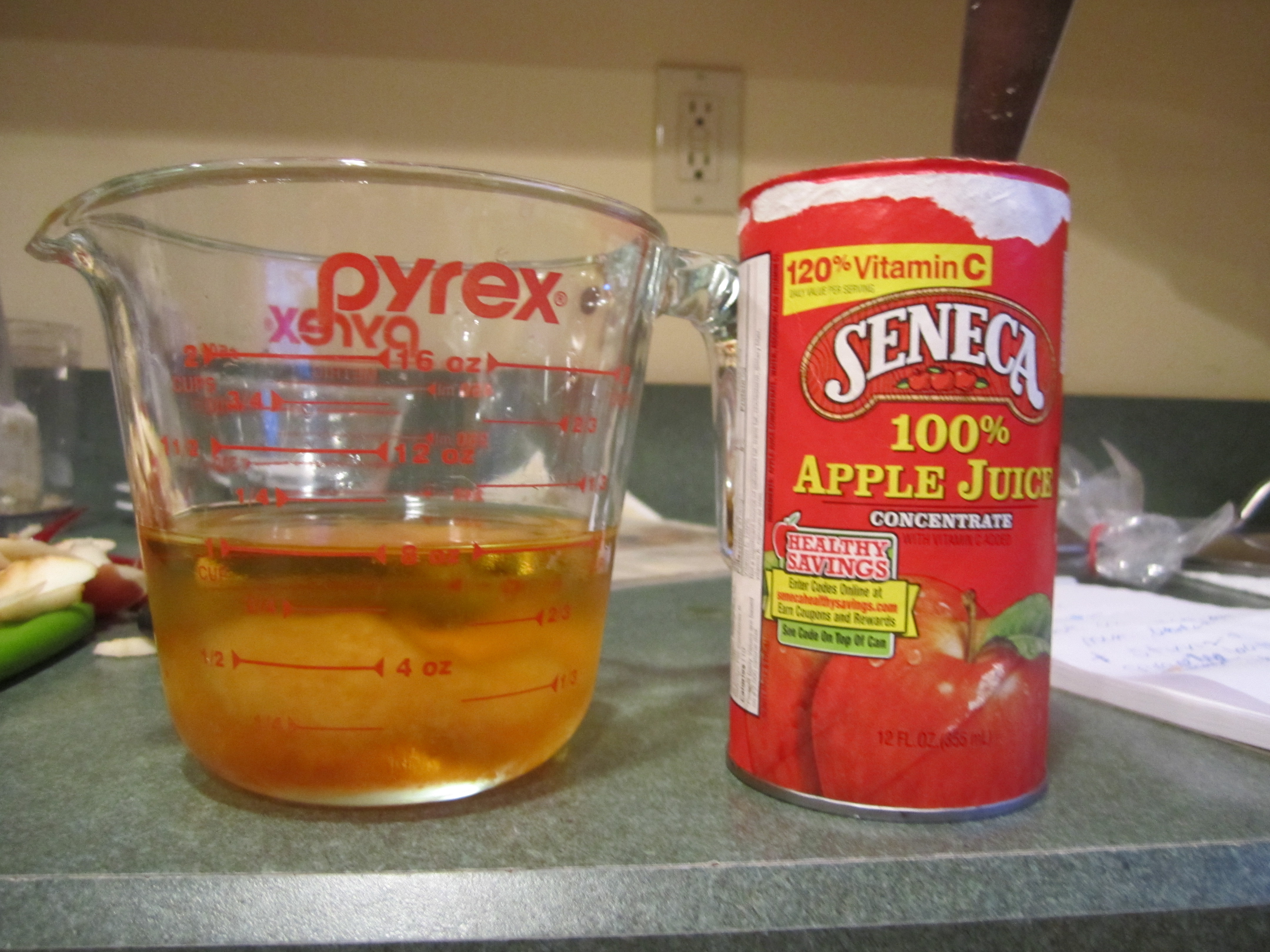 I have used many different varieties of apples and each one imparts a little different flavor, which is fun. The frozen apple juice can be any kind, it doesn’t matter. Make sure you have heavy cream. I have tried to get away with half and half but it’s just not the same. I even forgot it entirely one time (that’s why I now make sure to put it next to the pan while the chicken is simmering, that way I won’t forget). It was ok but I like it a lot more with the cream!
