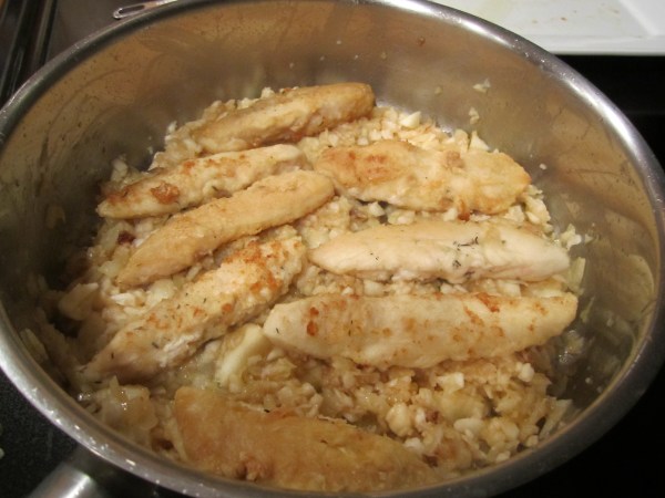 Add onion to saucepan and cook until lightly browned, about 5 minutes, scraping up brown bits from chicken.