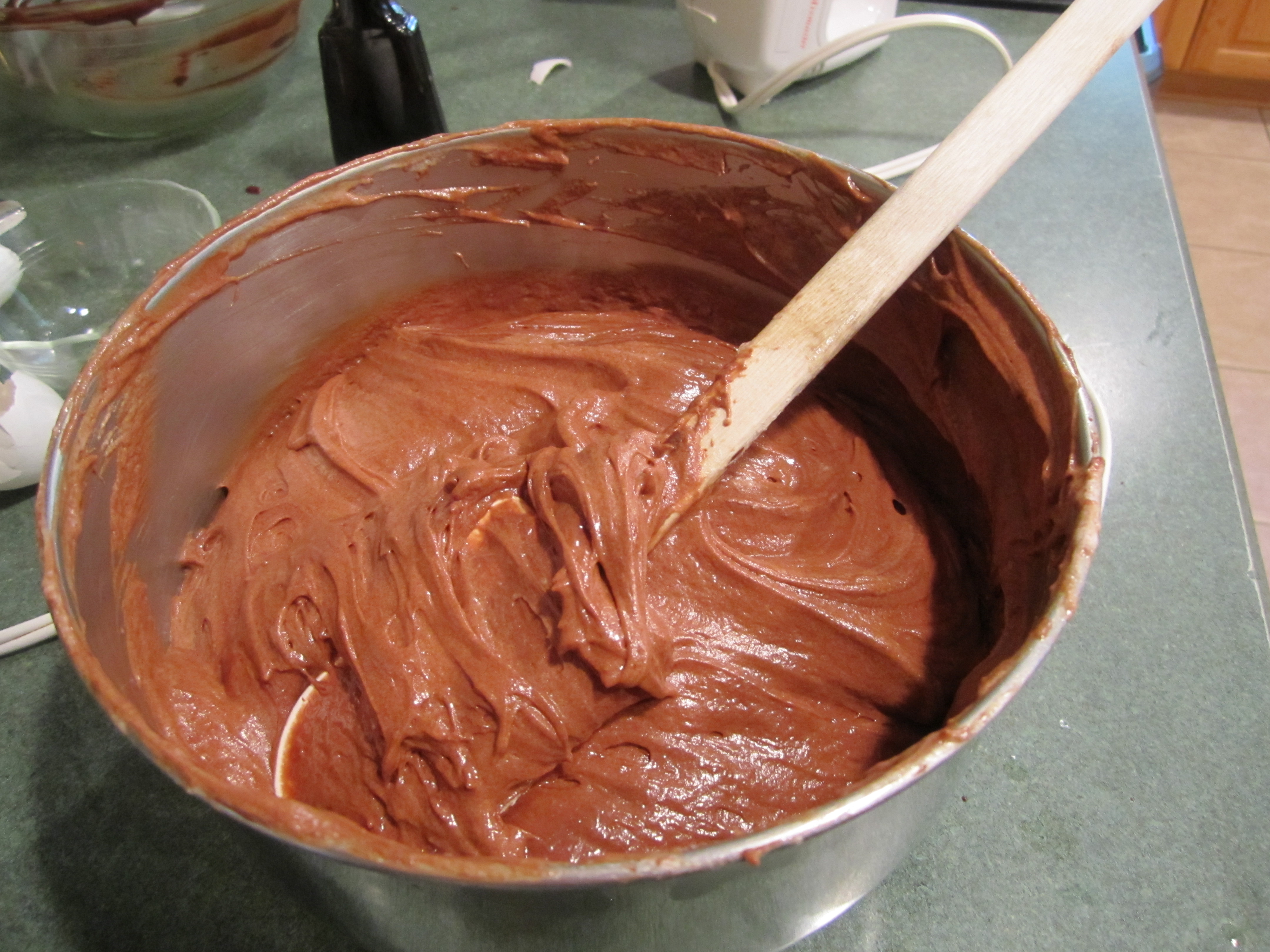 chocolate mixture folded into egg yolk mix: