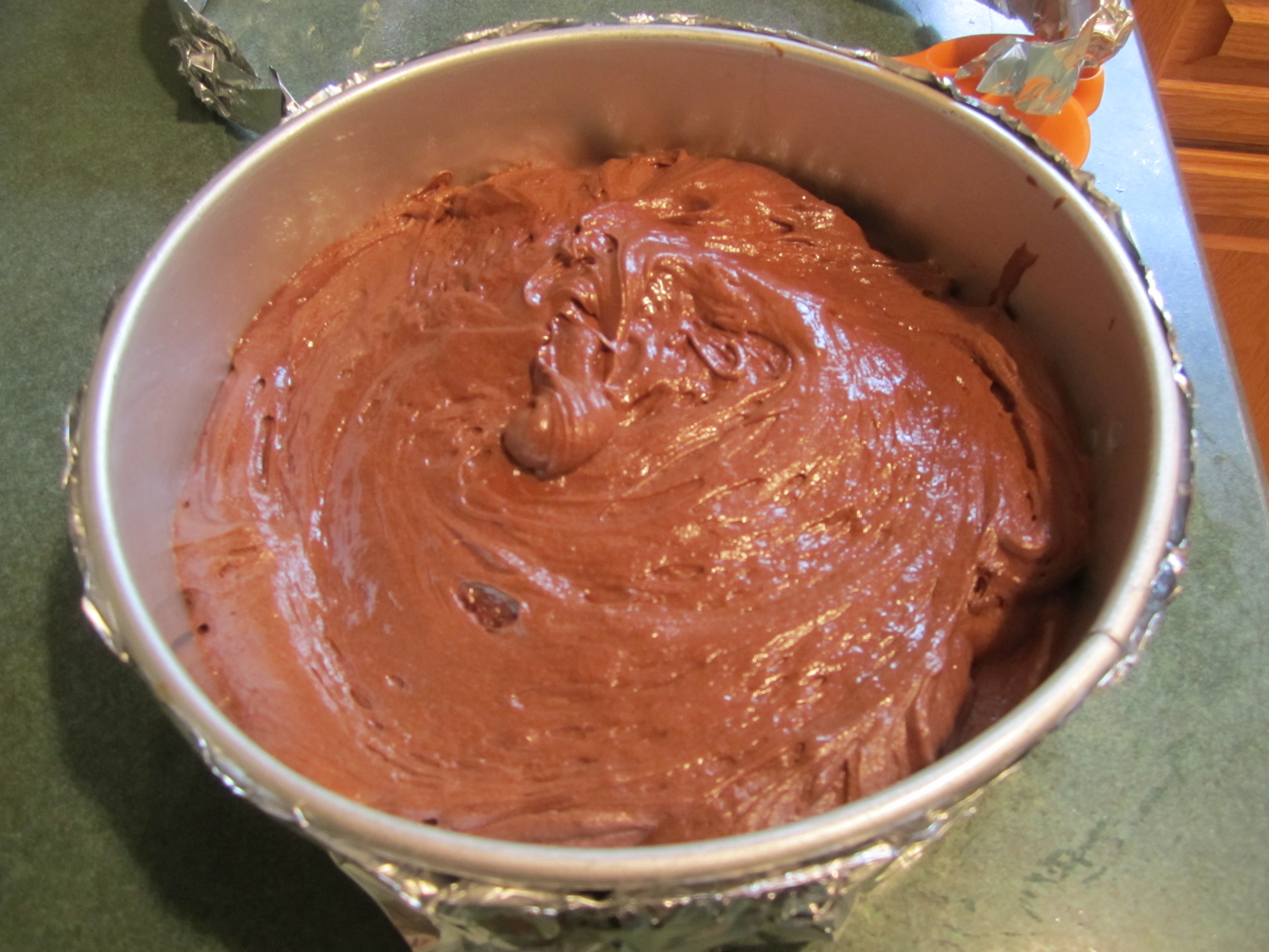 cake batter in pan: