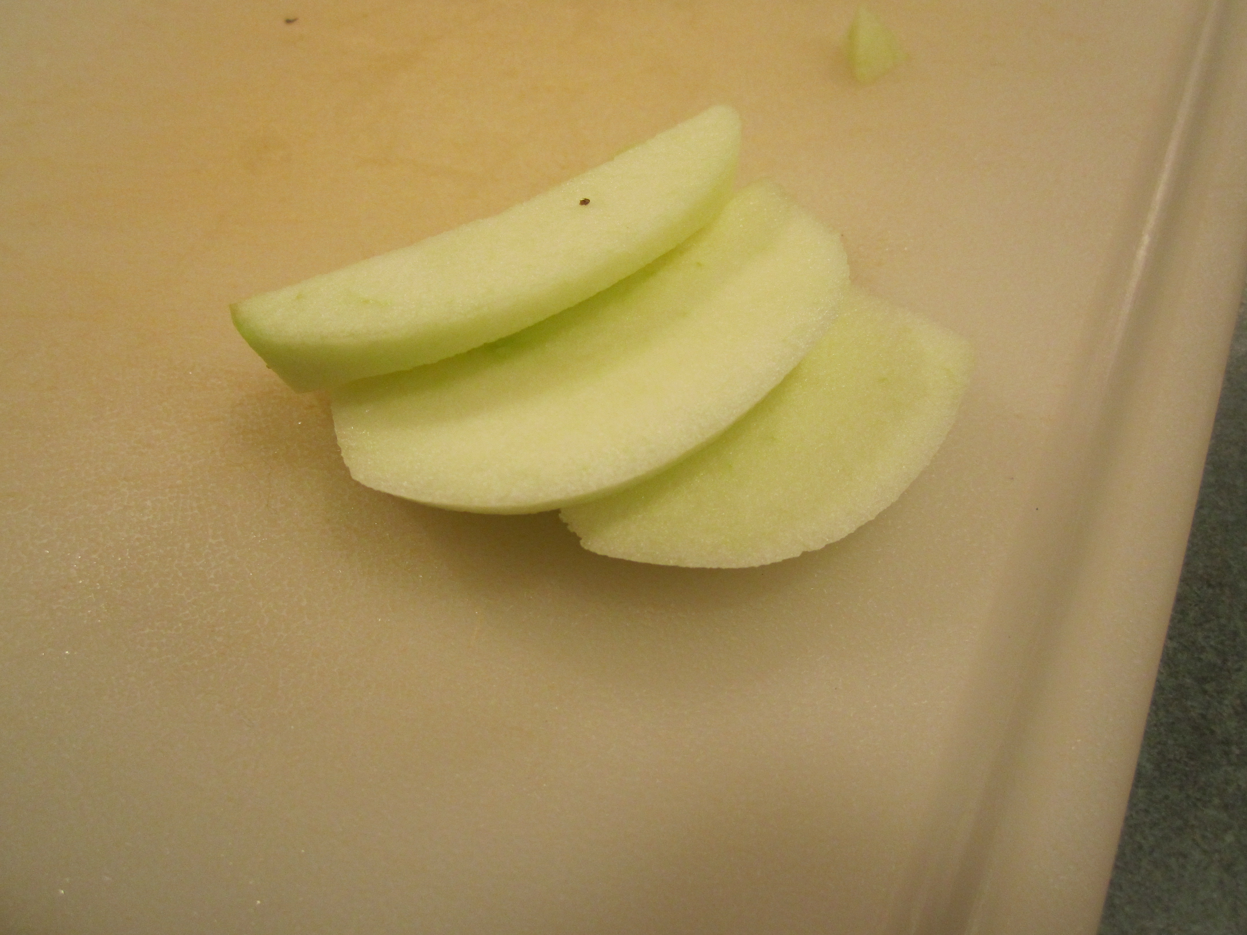 Your apple pieces need to be a small dice. Here’s how to do it.