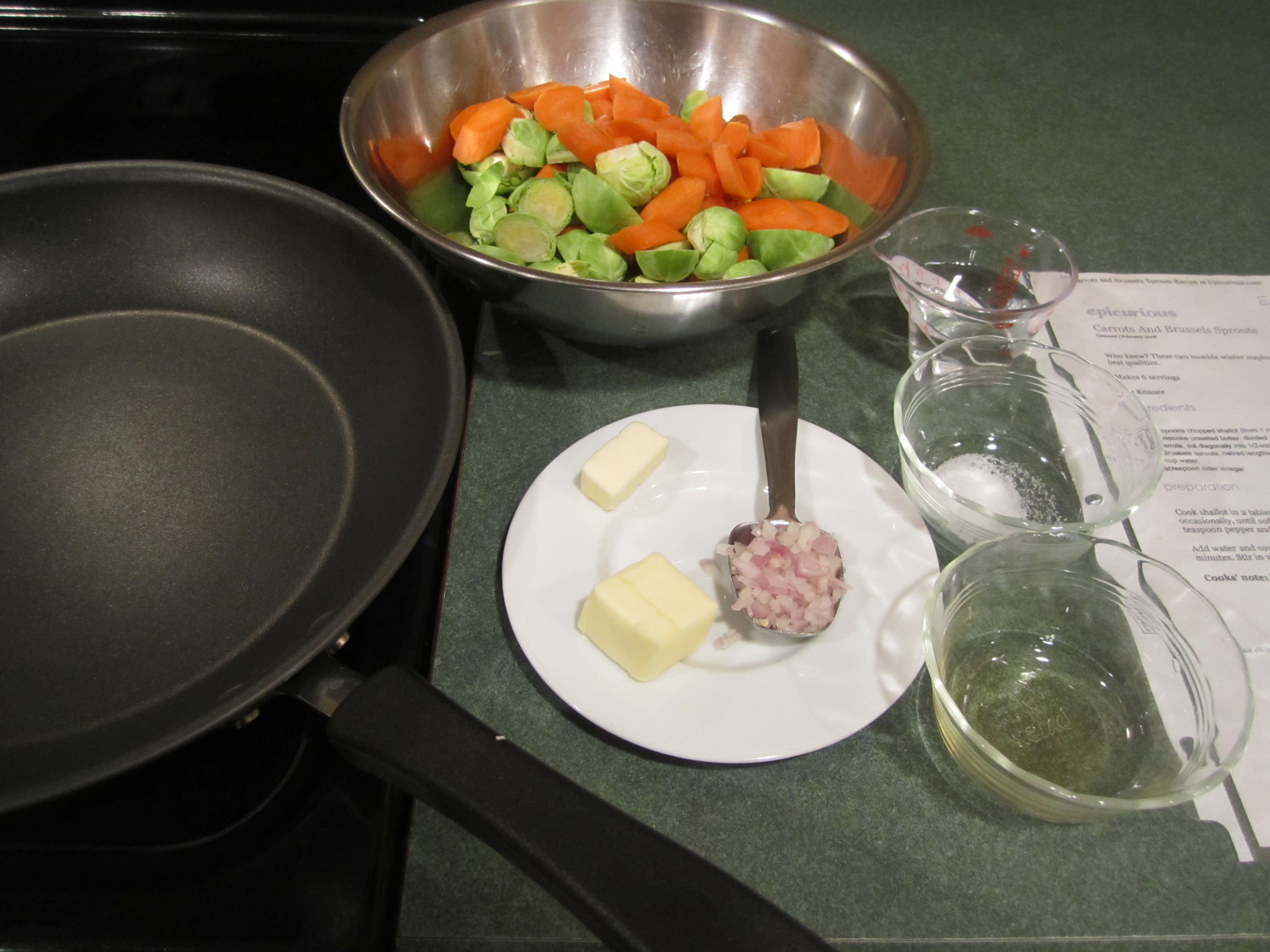 Now I needed a recipe for the brussels sprouts. I had a great one that I usually made for dinner parties, maybe I could halve it. It seemed possible so I started cutting the brussels sprouts and then remembered I could complete the recipe because I already had fresh, peeled carrots in the refrigerator. Perfect! Dinner was complete.