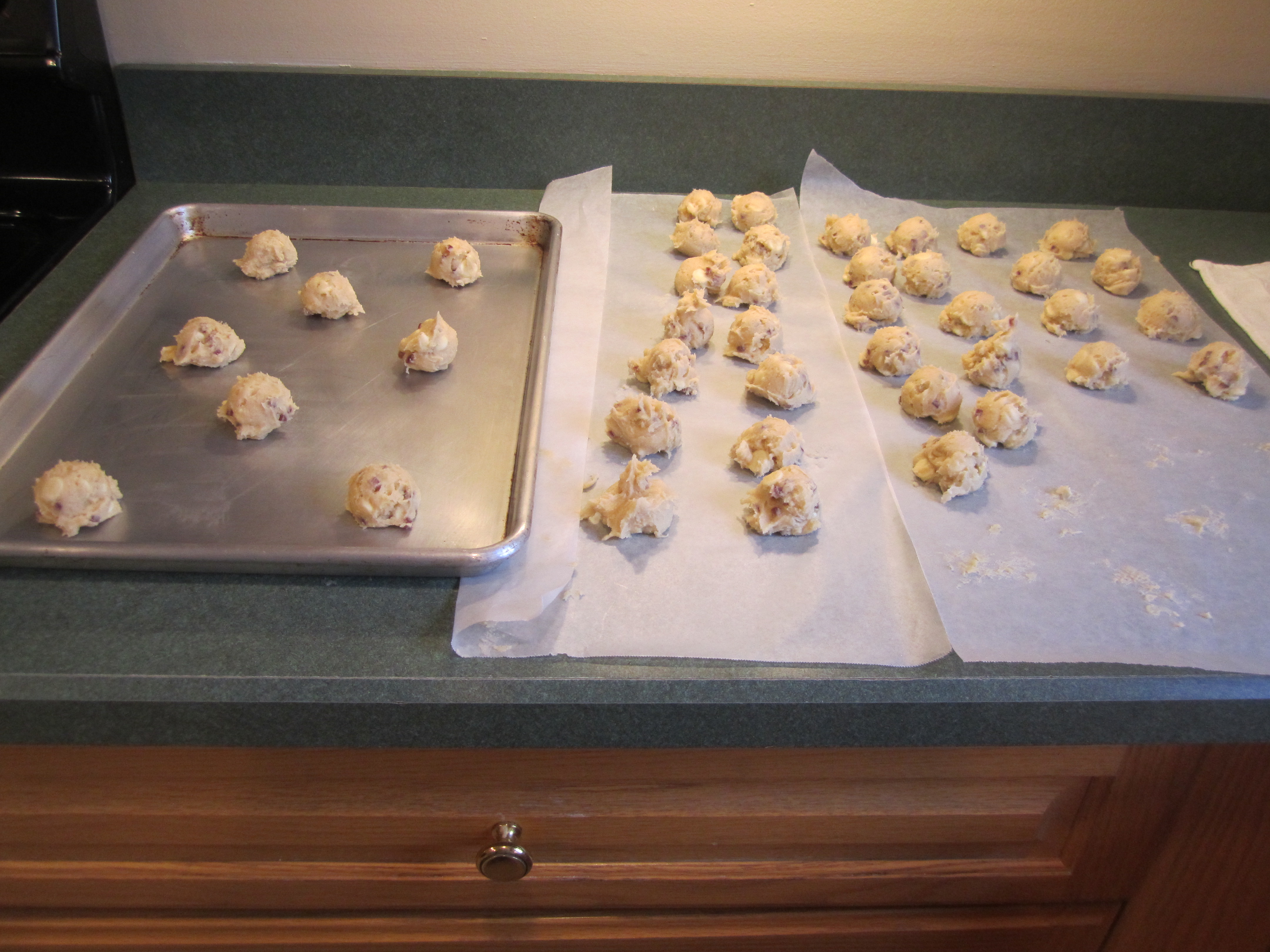 cookie dough on baking sheet, ready for oven: