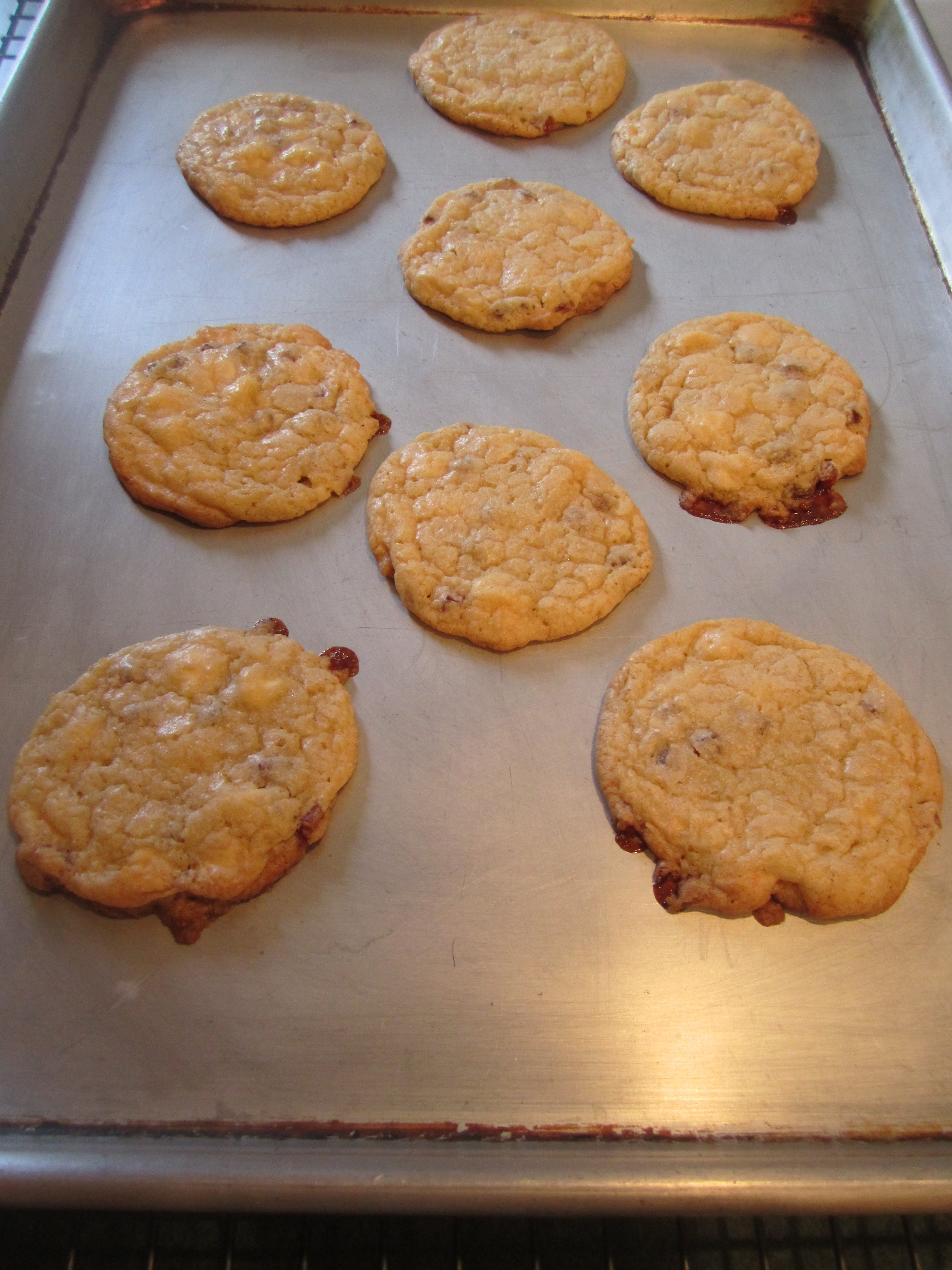 close up of baked cookies, slightly brown around the edges: