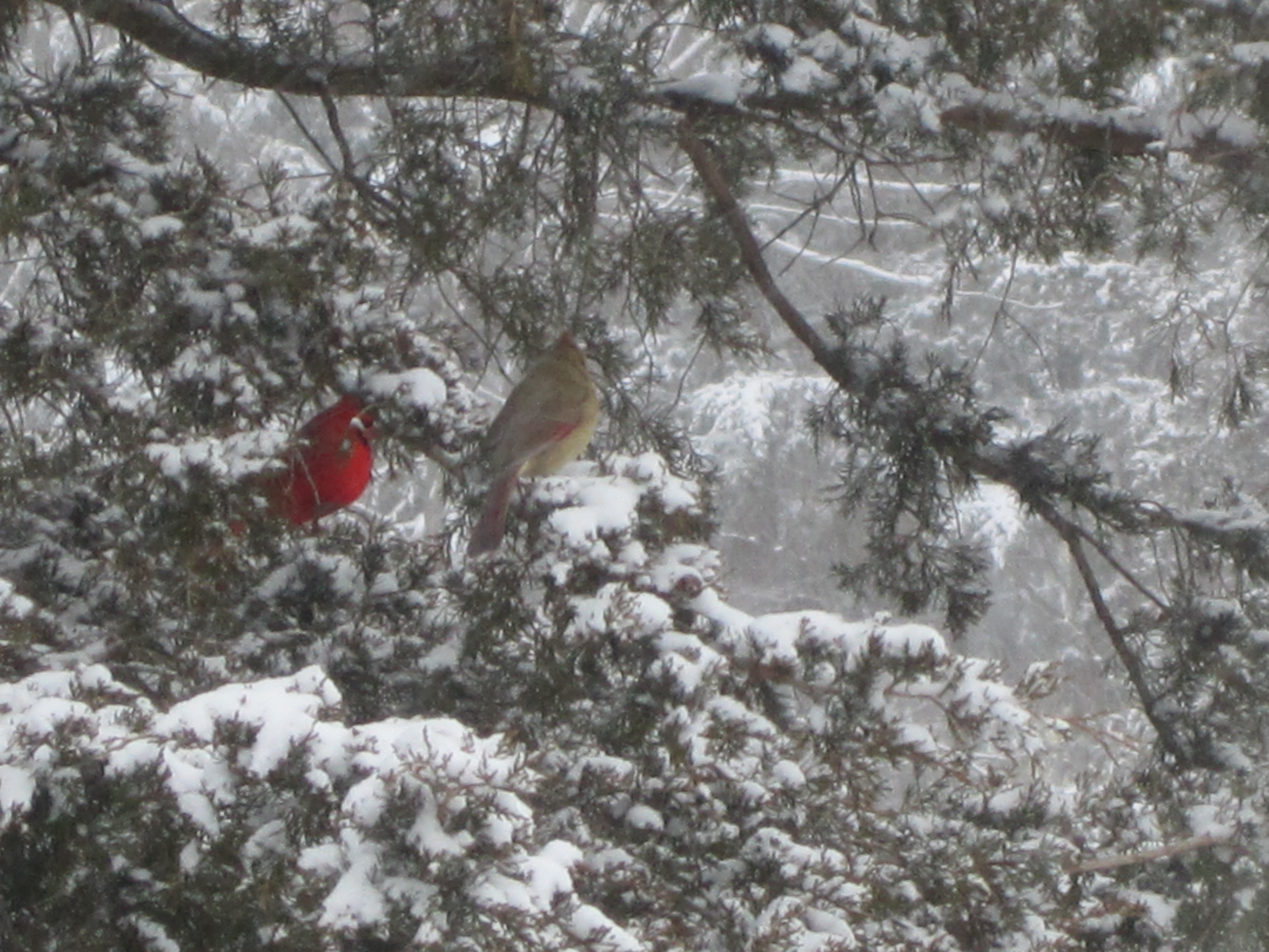 Cardinals waiting their turn at the feeder