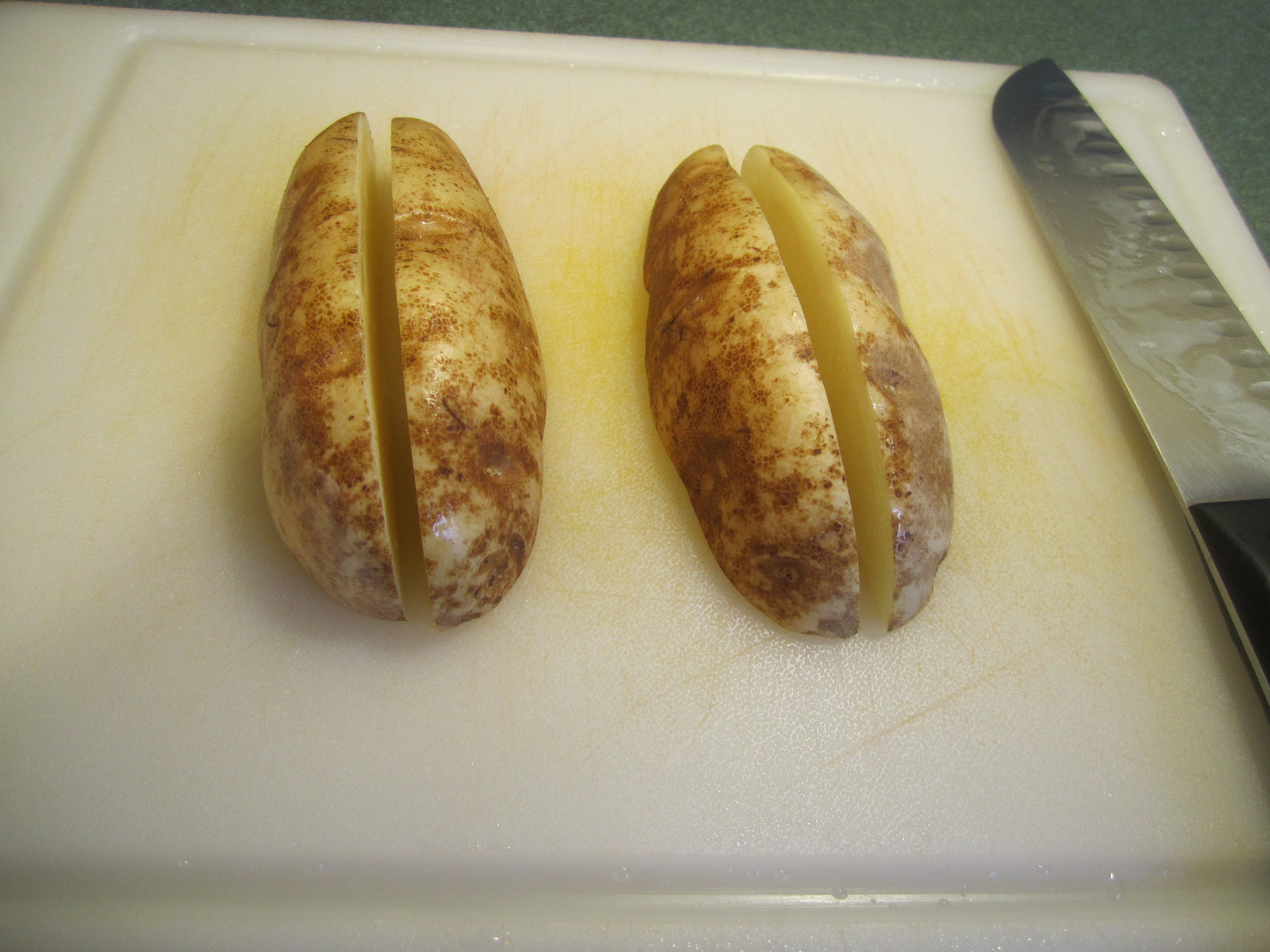 cut potato lengthwise: