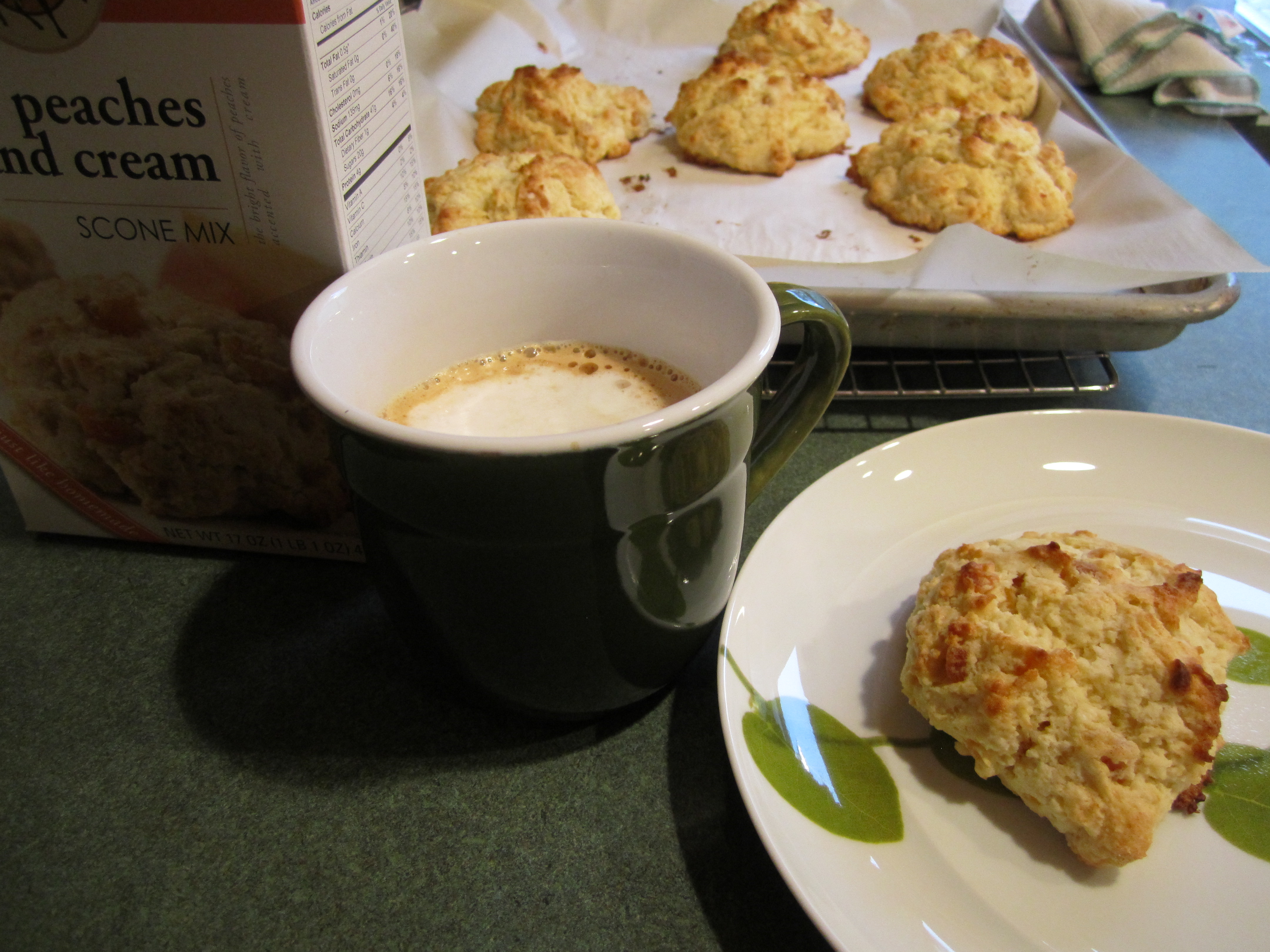 Because of your excellent persuasive points, it swayed me from my skepticism from baking from a mix and I decided to try a box of the Peaches and Cream Scones this morning. I am very glad I did.