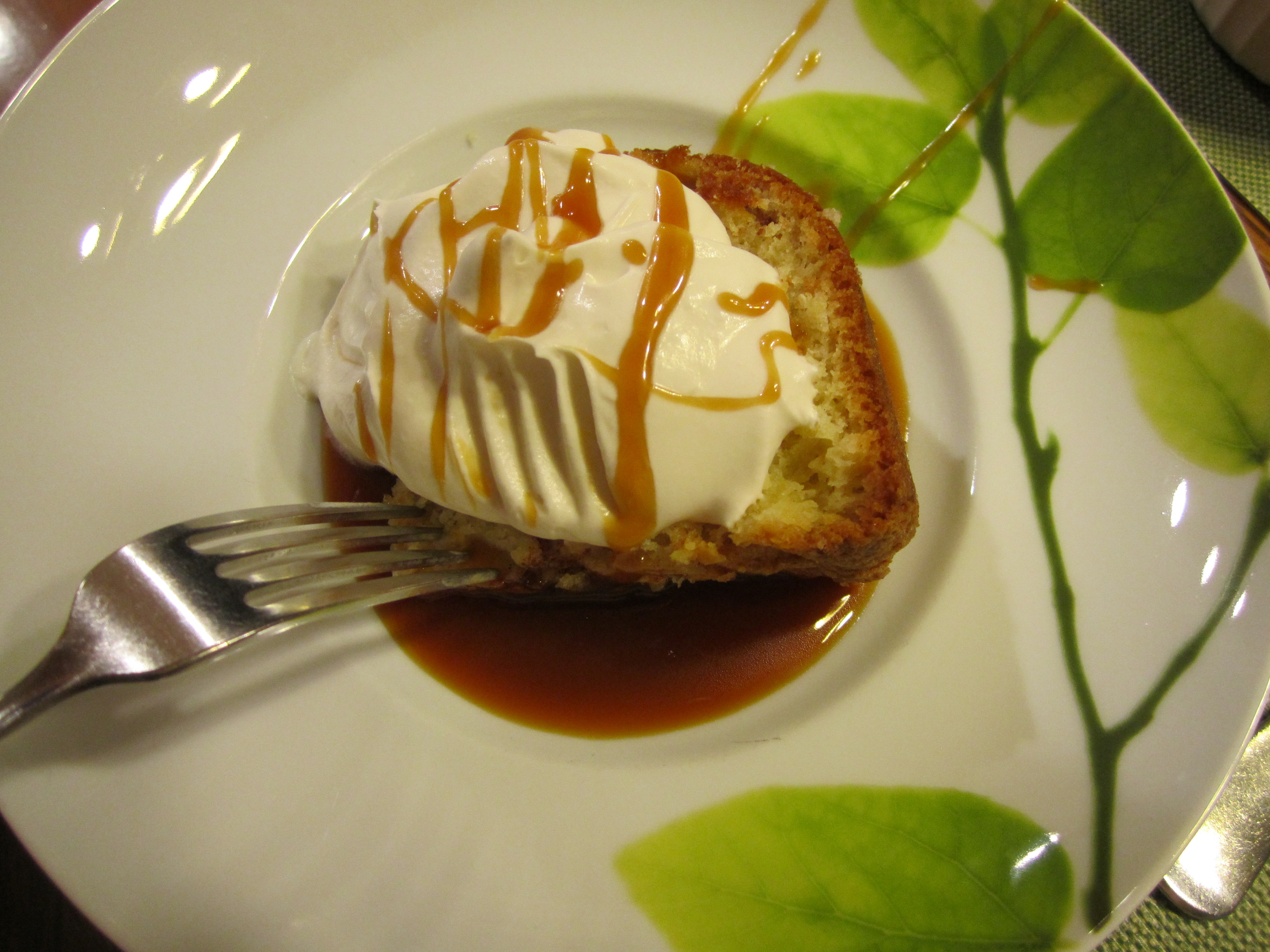 Apple Cake with Caramel Sauce and Bourbon Whipped Cream