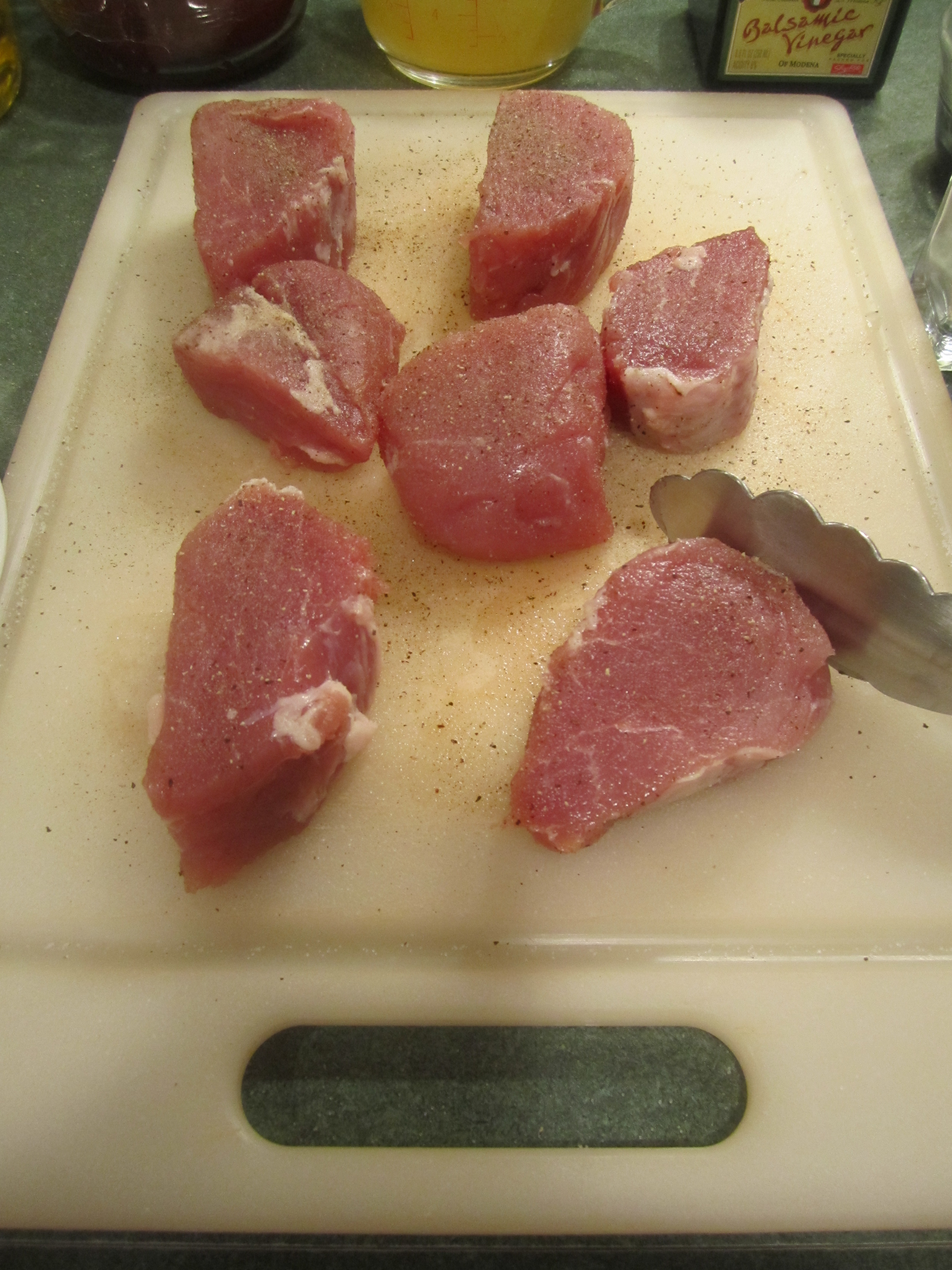 Cut the pork tenderloin into 1-1/2 inch medallions. Salt and pepper both sides.