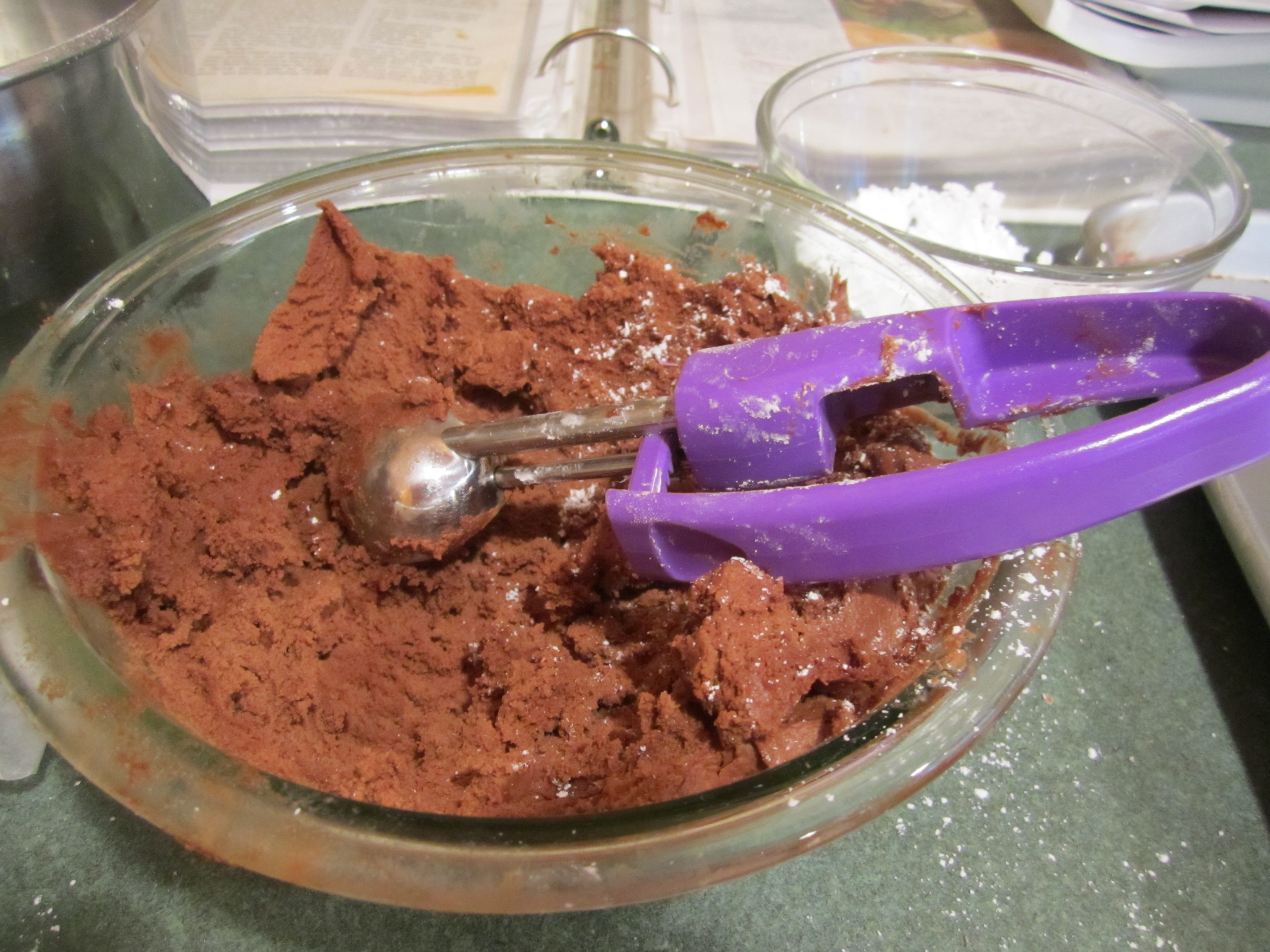 It’s difficult to see with chocolate cookies whether they are done because well, they’re black! The only way to really tell, is to let your first sheet of cookies cool and then try one. You know, all in the name of Science! The Science of cookie making, that is.
