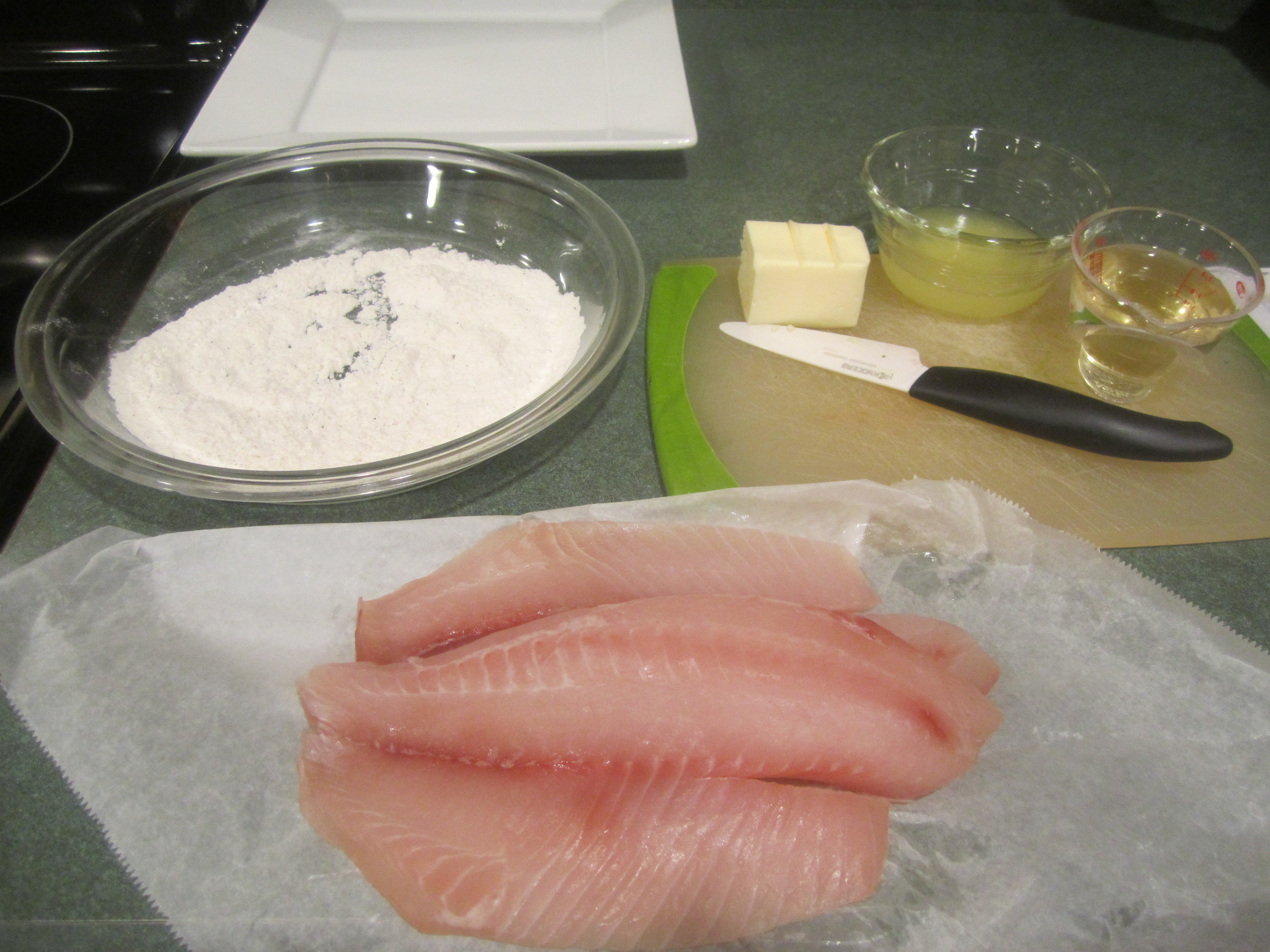 Combine remaining 1/4 teaspoon salt, remaining 1/8 teaspoon and flour in a large shallow dish, like a glass pie plate. Dredge fish in flour mixture. Set aside the butter, wine, lemon juice and capers (if using).