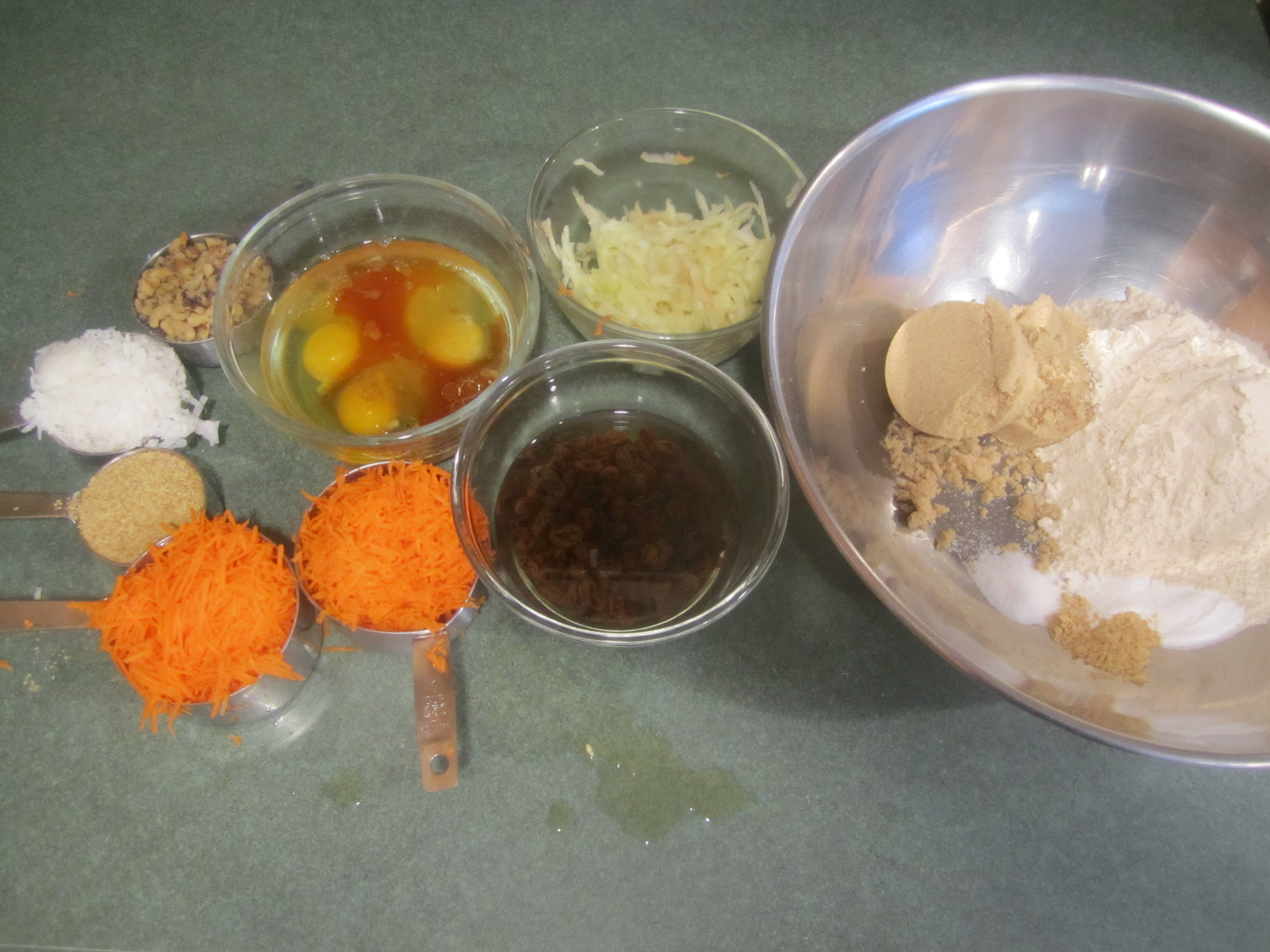 dry ingredients plus carrots, apple, coconut, nuts and wheat germ: