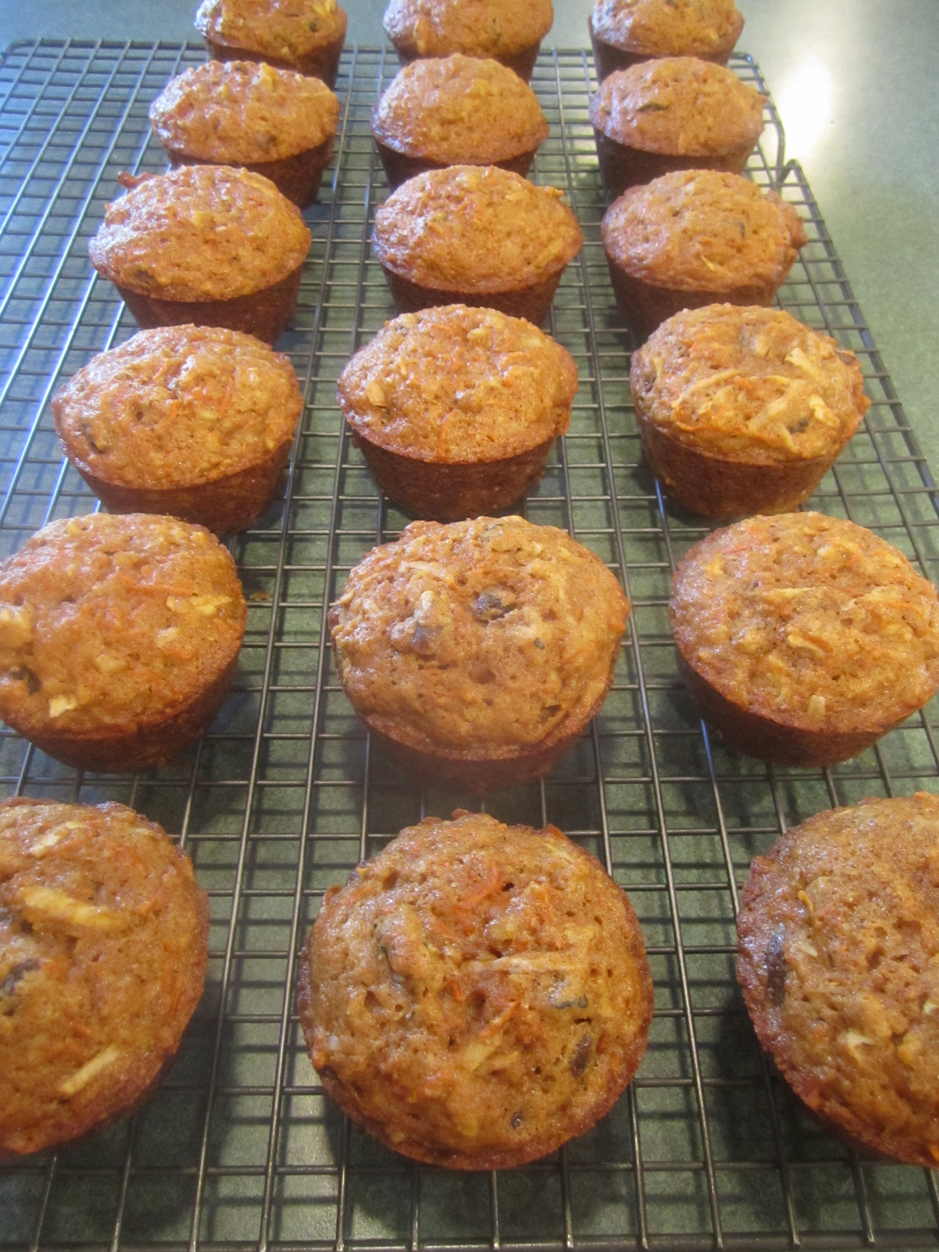 ok, Susie – I tried them and they came out great! Funny – but not all box graters appear to be the same – mine doesn’t have those small holes like yours, so i used the larger ones. Also, this really made a full 2 dozen for me. I wonder if we could add fresh pineapple chunks? I feel like that was in the one I had in Cali and it would make them a little more chunky and sweet? What do you think?