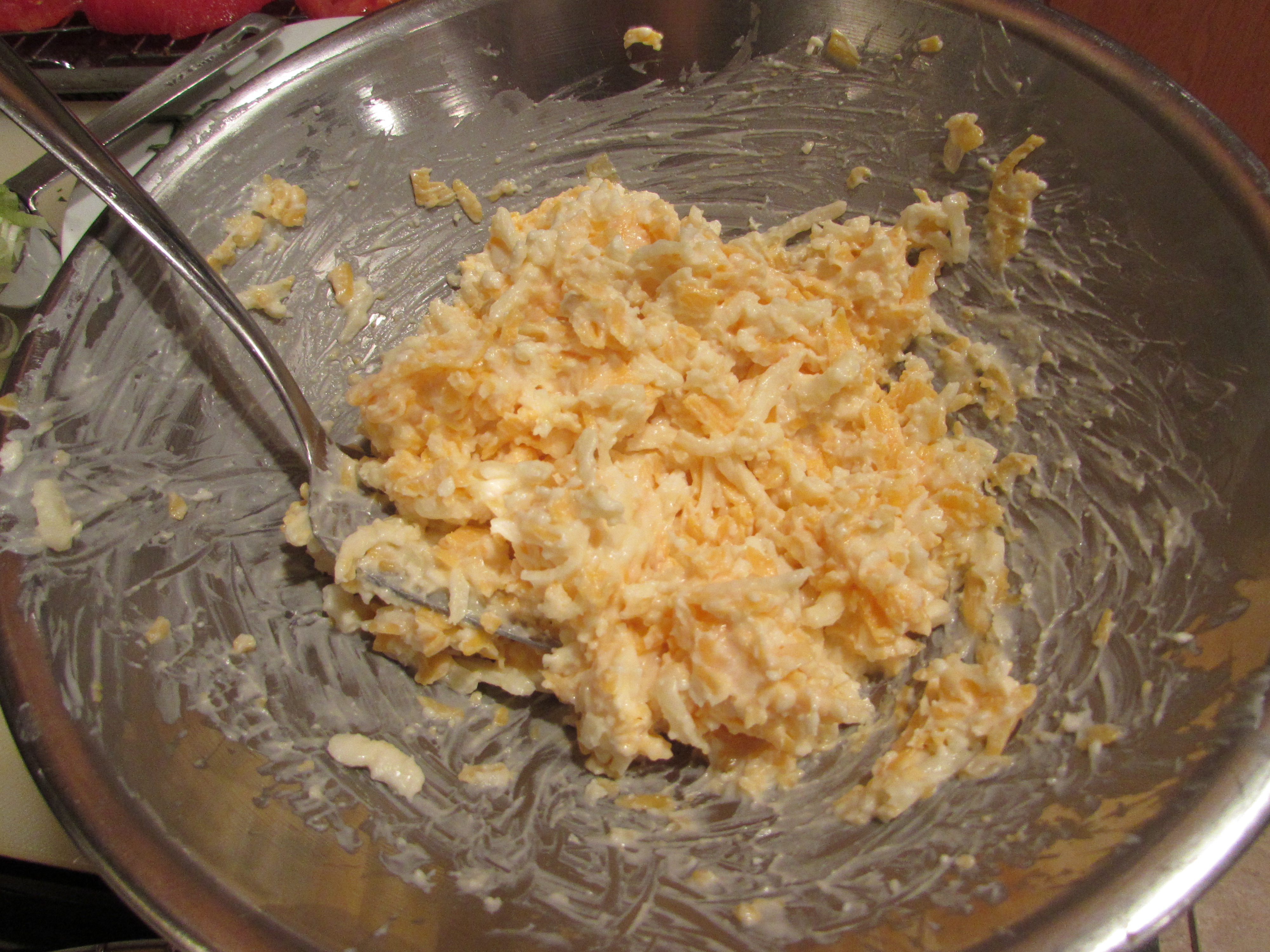 Spread the cheese/mayonnaise mixture on top (I used my fingers, clean fingers!) of the tomatoes.