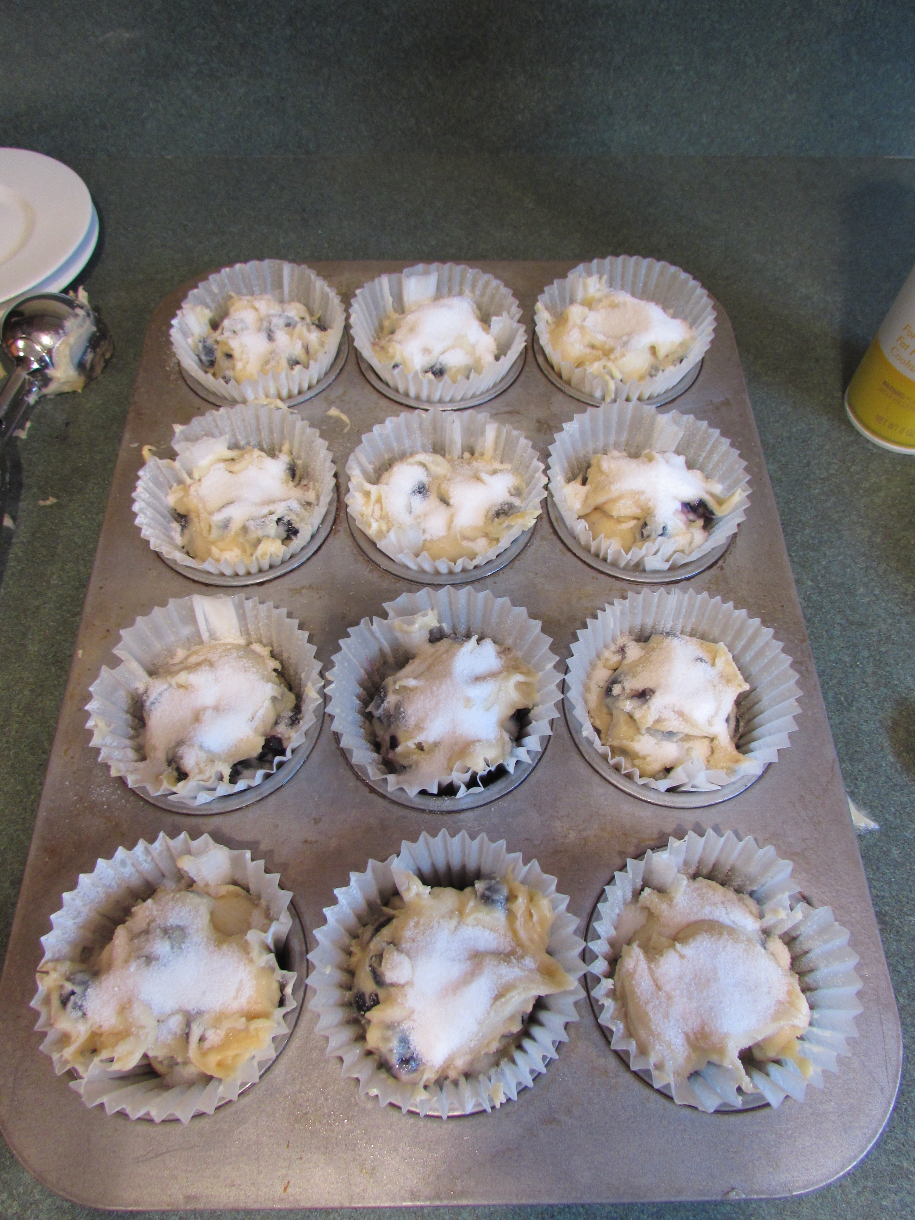 Sprinkle each muffin with about 1 teaspoon of sugar.