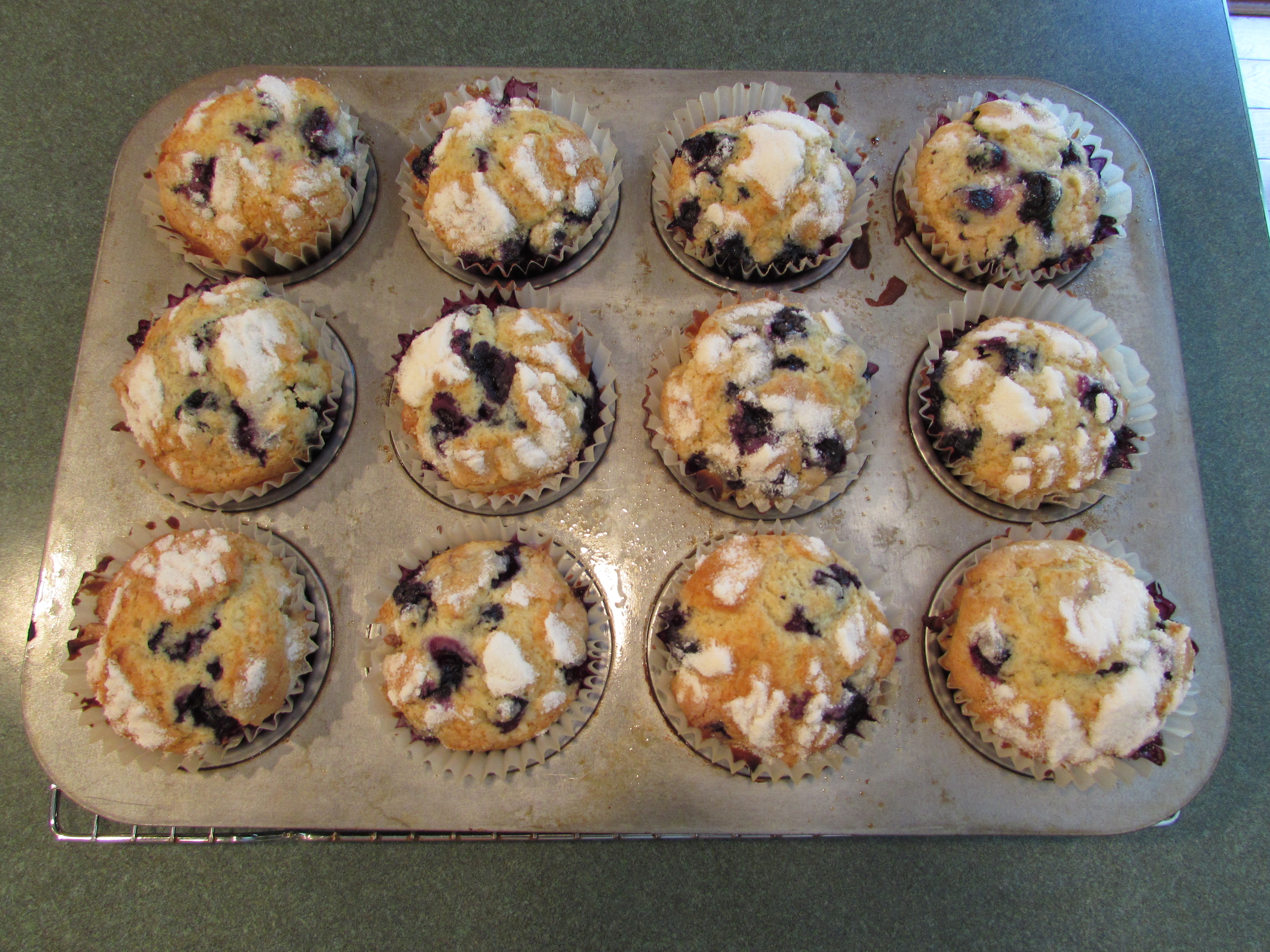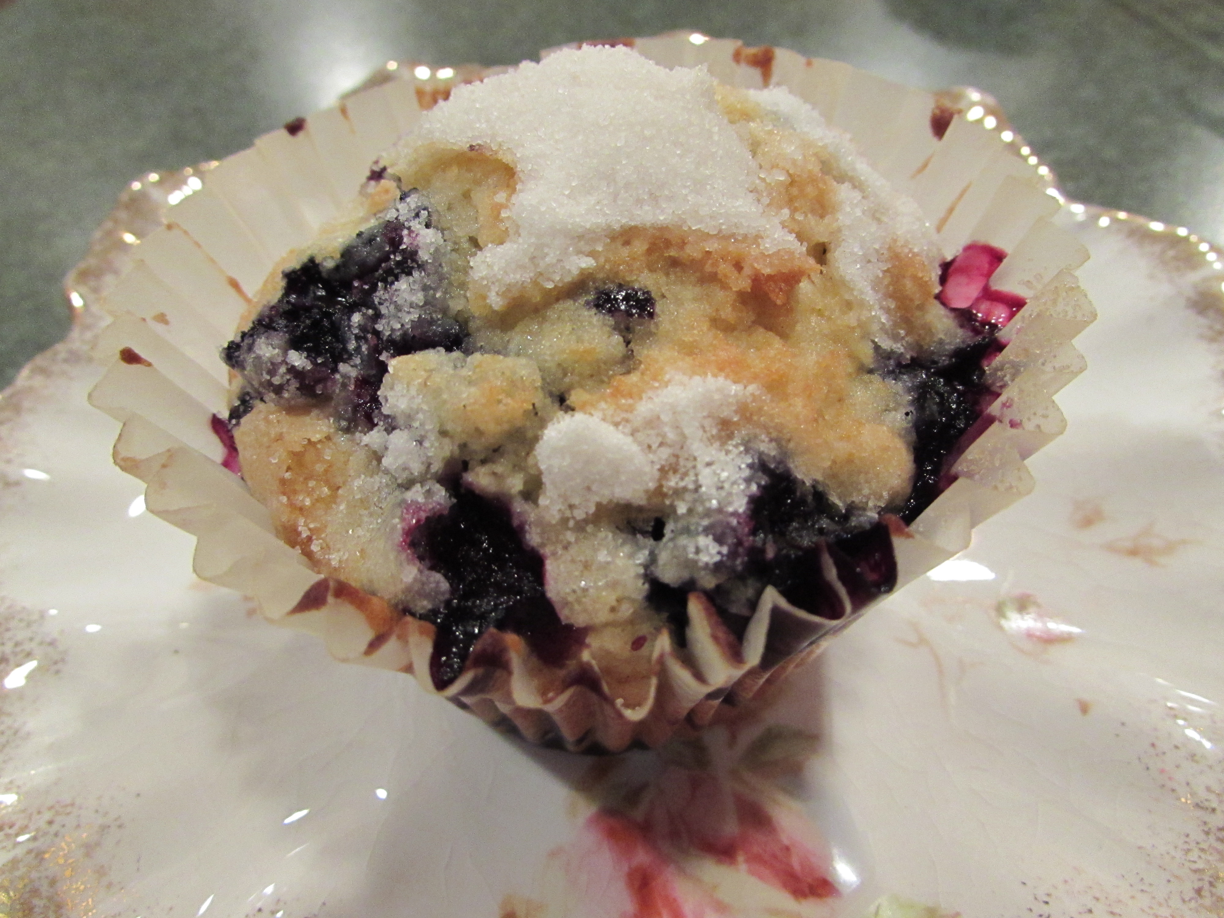 They were nearly impossible to get out of the tin and barely in muffin form when I finally did get them out. I was going to make them again and increase the amount of muffin tins from 12 to 18. Then my daughter e-mailed me for a good blueberry muffin recipe that she could make for her sister in law’s birthday breakfast. I said “these were excellent” but then explained my problems. I advised her not to smash any of the berries, only use 2 cups instead of 2-1/2 and make more than 12, like 18. After Sarah read alot of the reviews, she took my advice on the berries but opted for the muffin papers and made 12 like the recipe stated. She told me they turned out great and I must agree!!