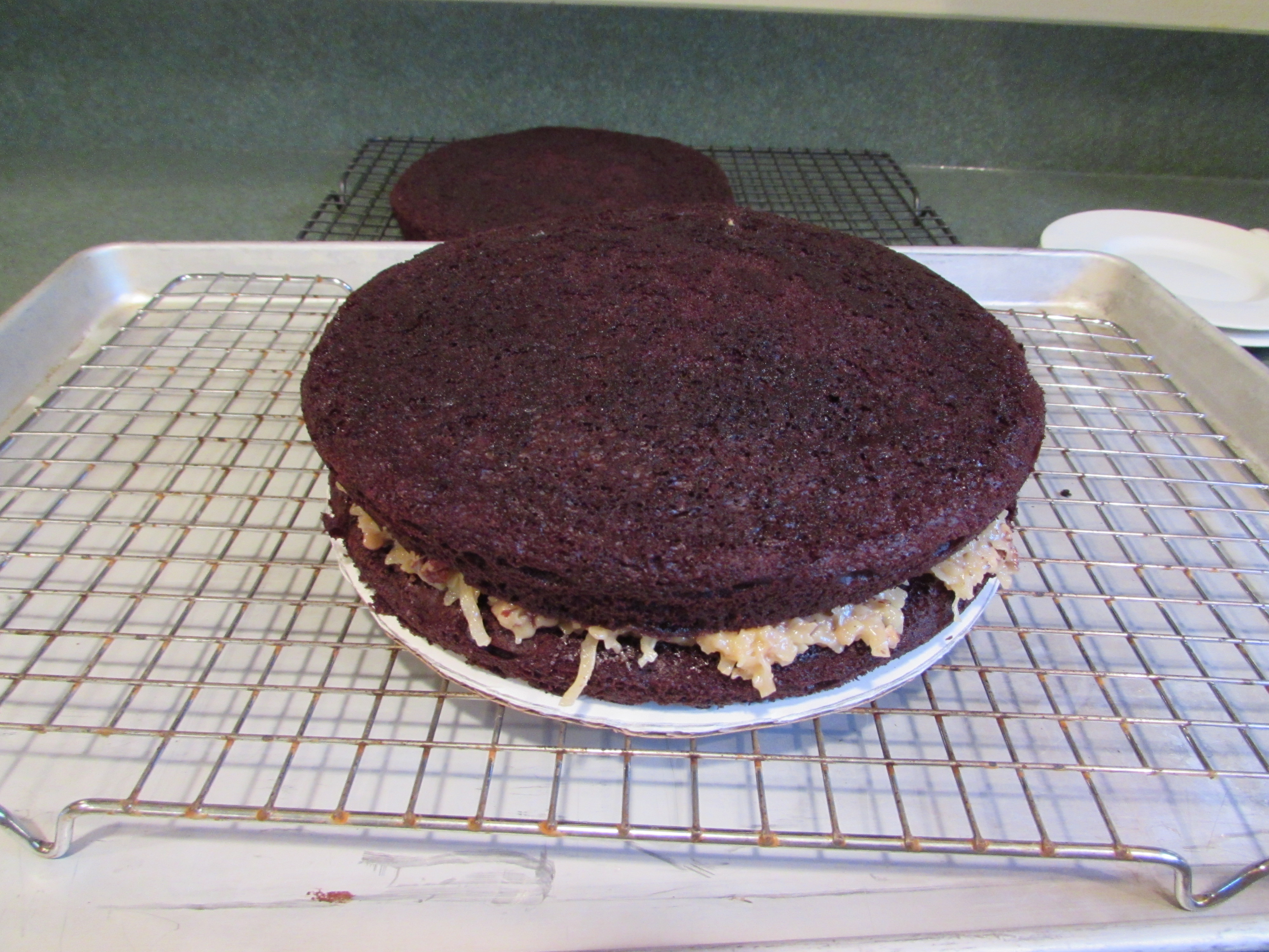 Inside Out German Chocolate Cake (adapted slightly from Gourmet March 2000)