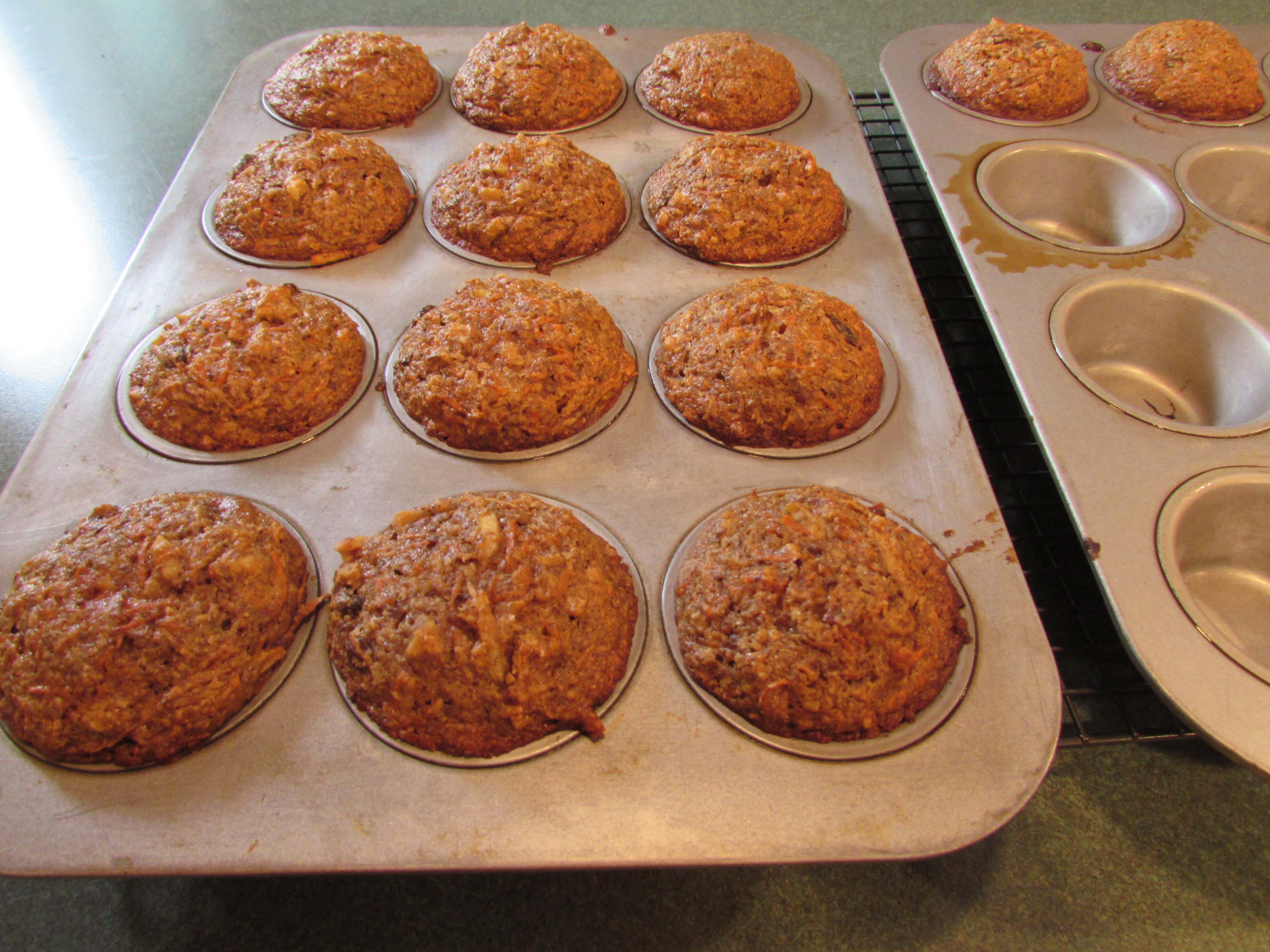 Preheat oven to 350 degrees. Spray with canola oil spray, 14-15 muffin cups (you will need 2, 12 cup muffin pans).