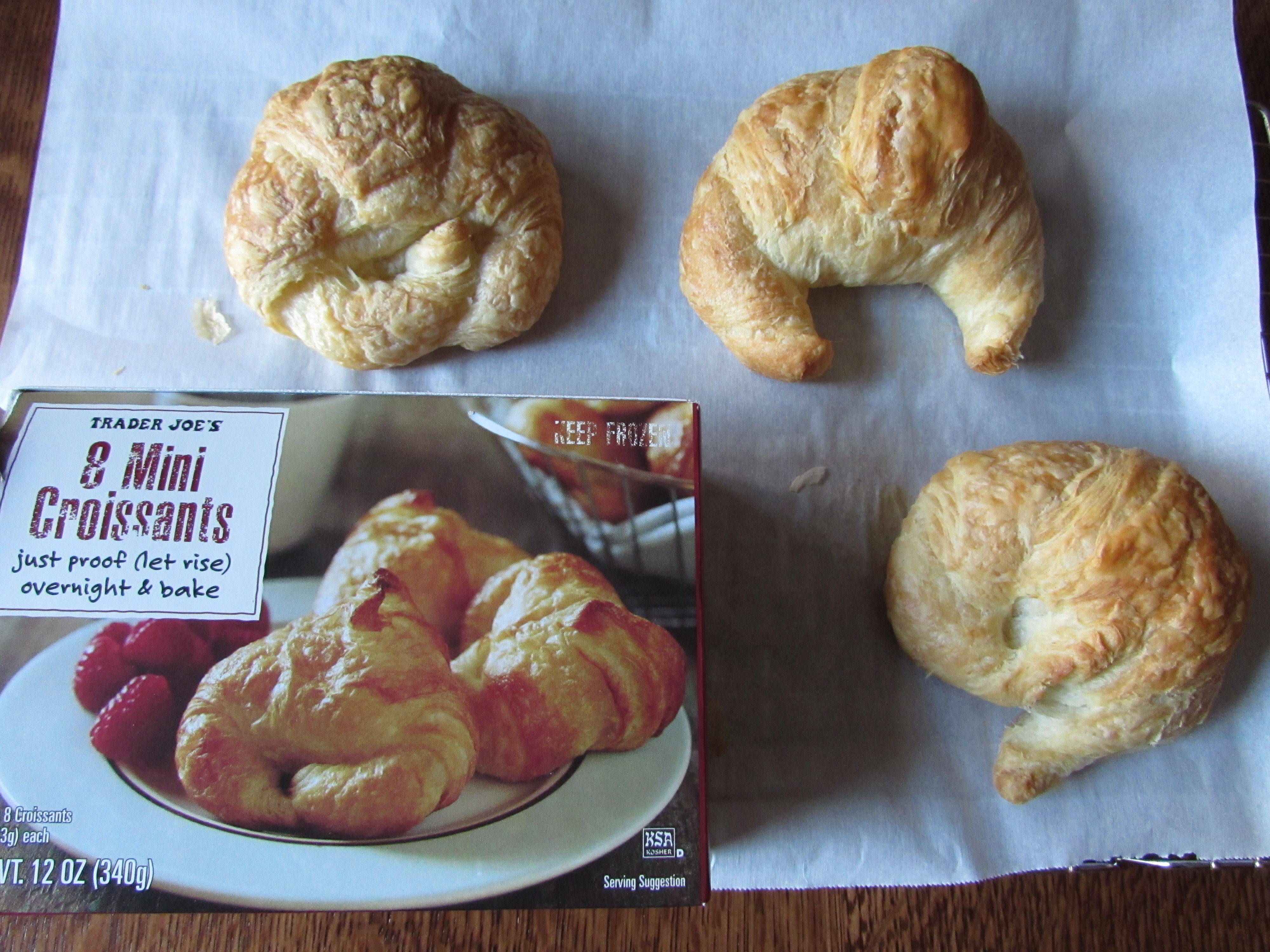 You take them out the night before (they are frozen, so look in the frozen section), place them on a parchment lined cookie sheet to proof and the next morning bake them off! I tried them this past Saturday/Sunday. They were in the oven for all of 4 minutes when we lost electricity (extremely windy over the weekend) so I took them out. Two hours later when the electric came back on, I put the croissants back into the oven and believe it or not they turned out perfectly! Paper thin crunchy on the outside and soft and delicate on the inside.