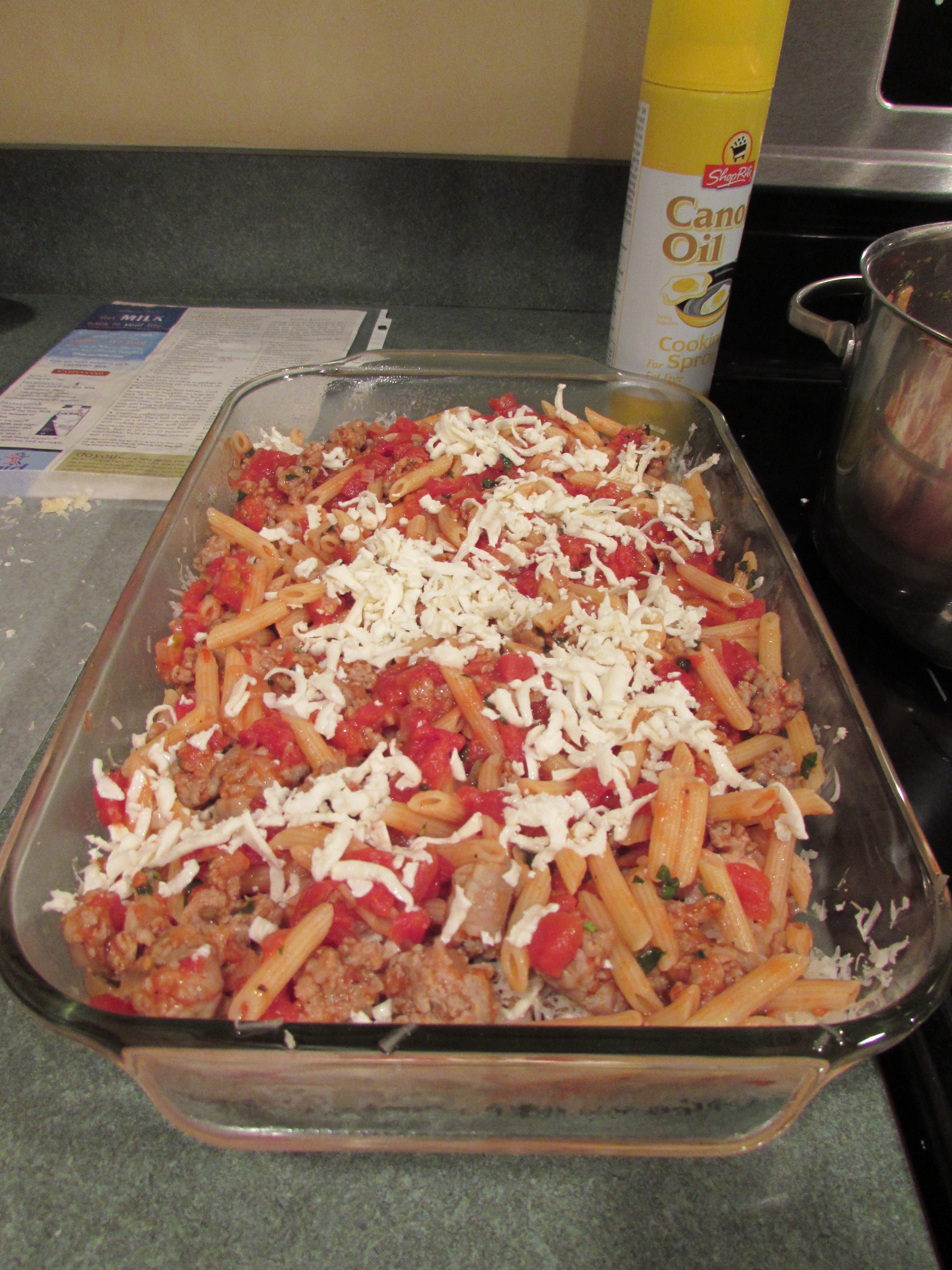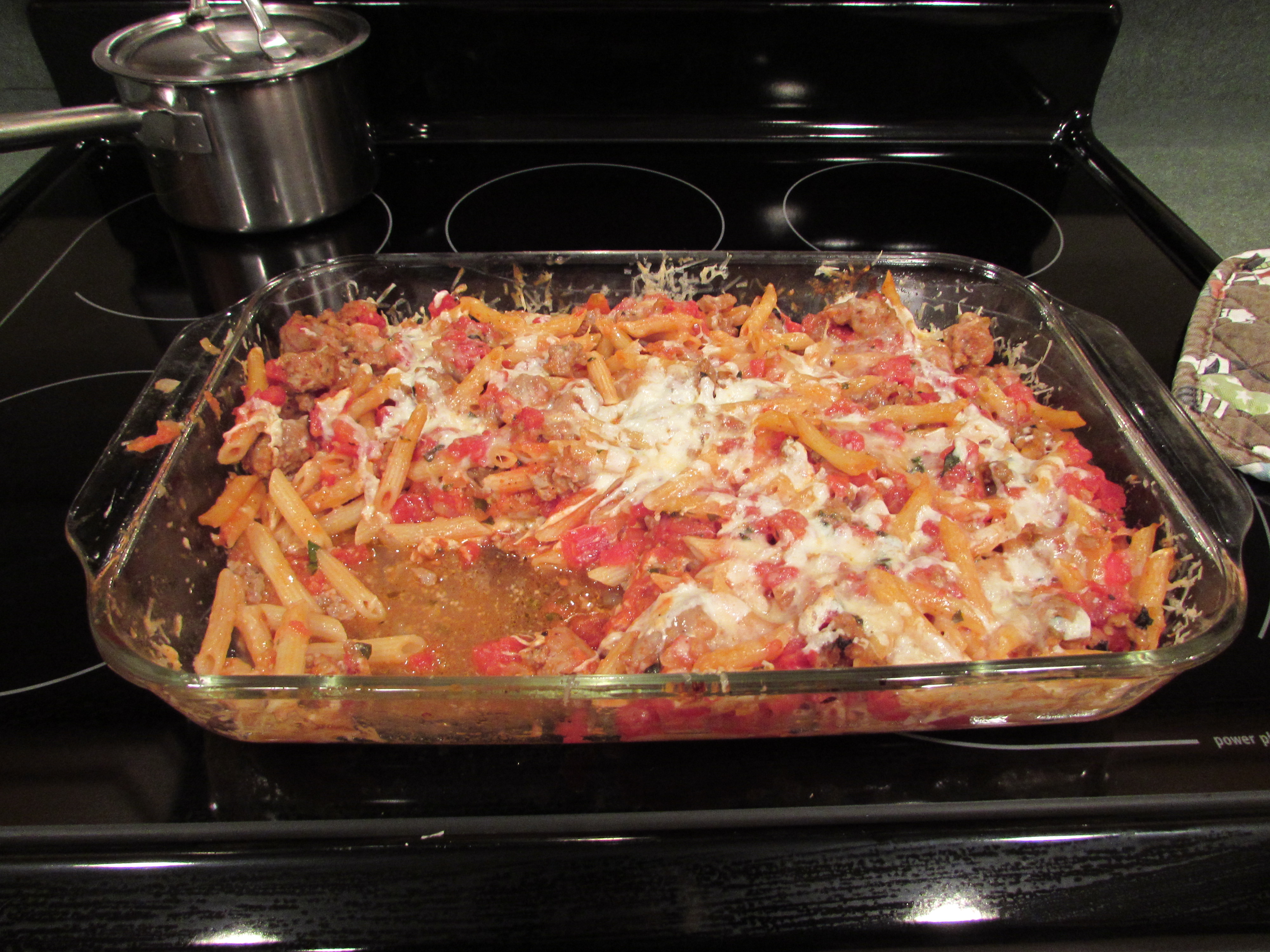 Baked Pasta with Sausage, Tomatoes and Cheese