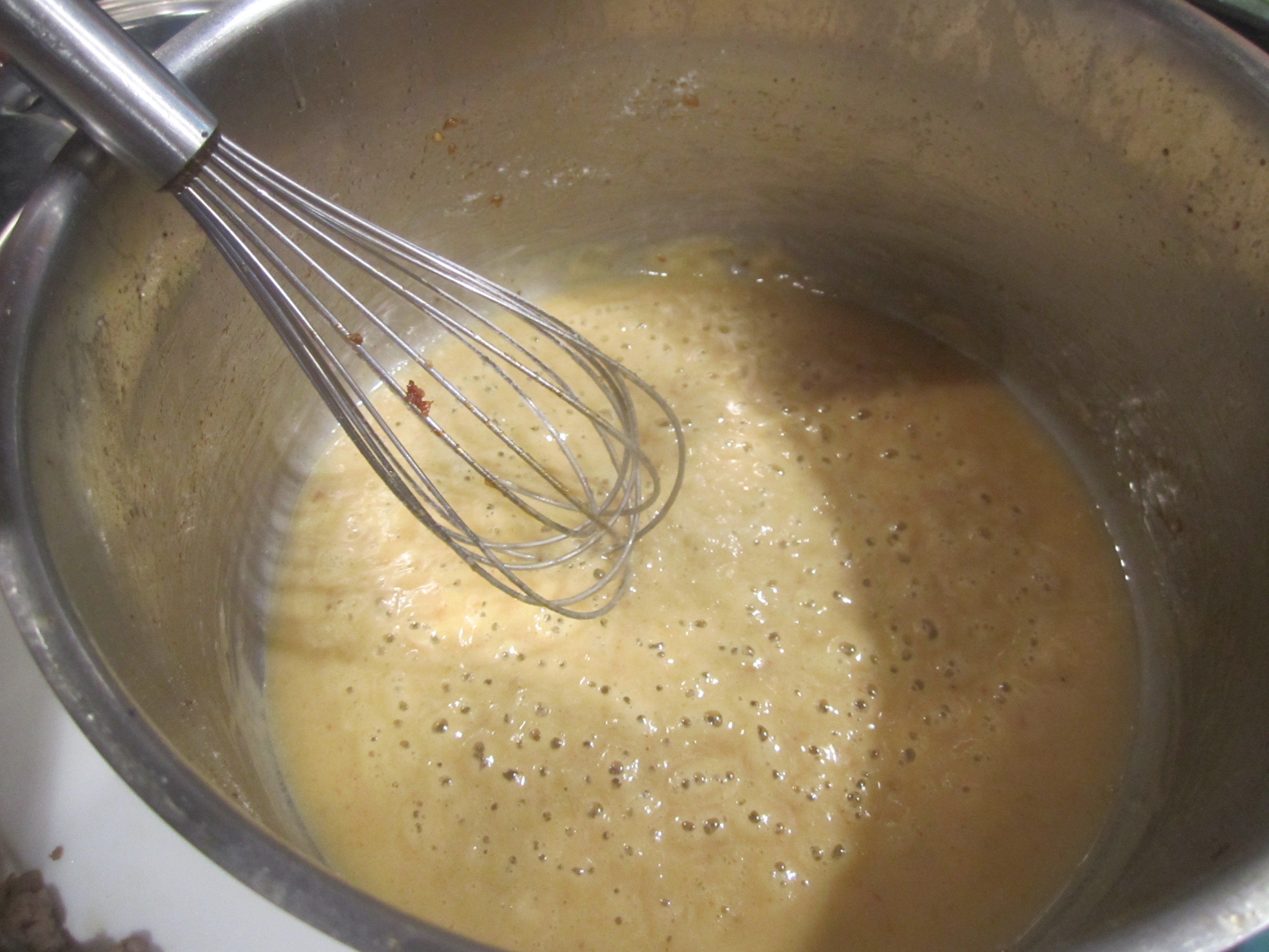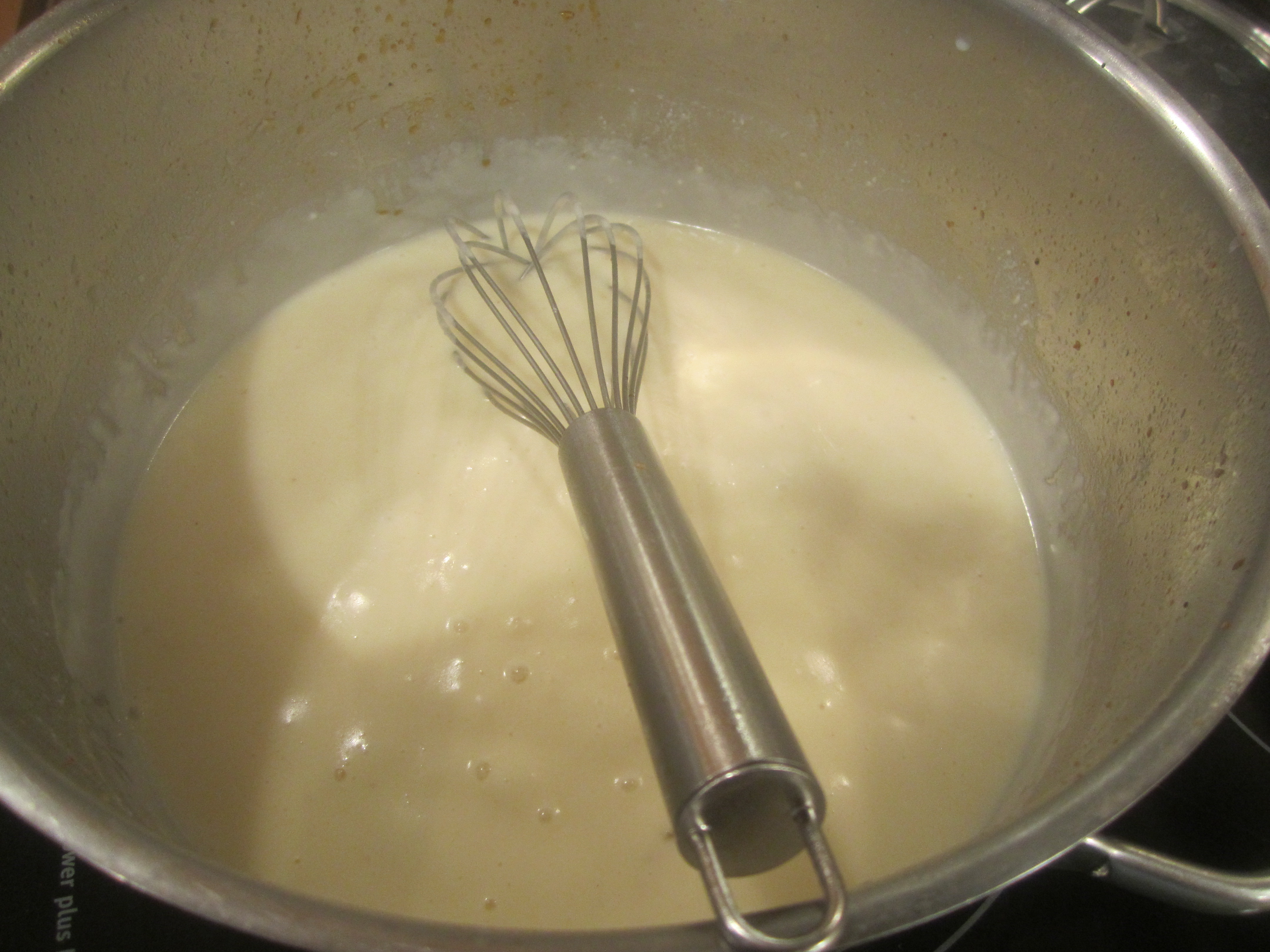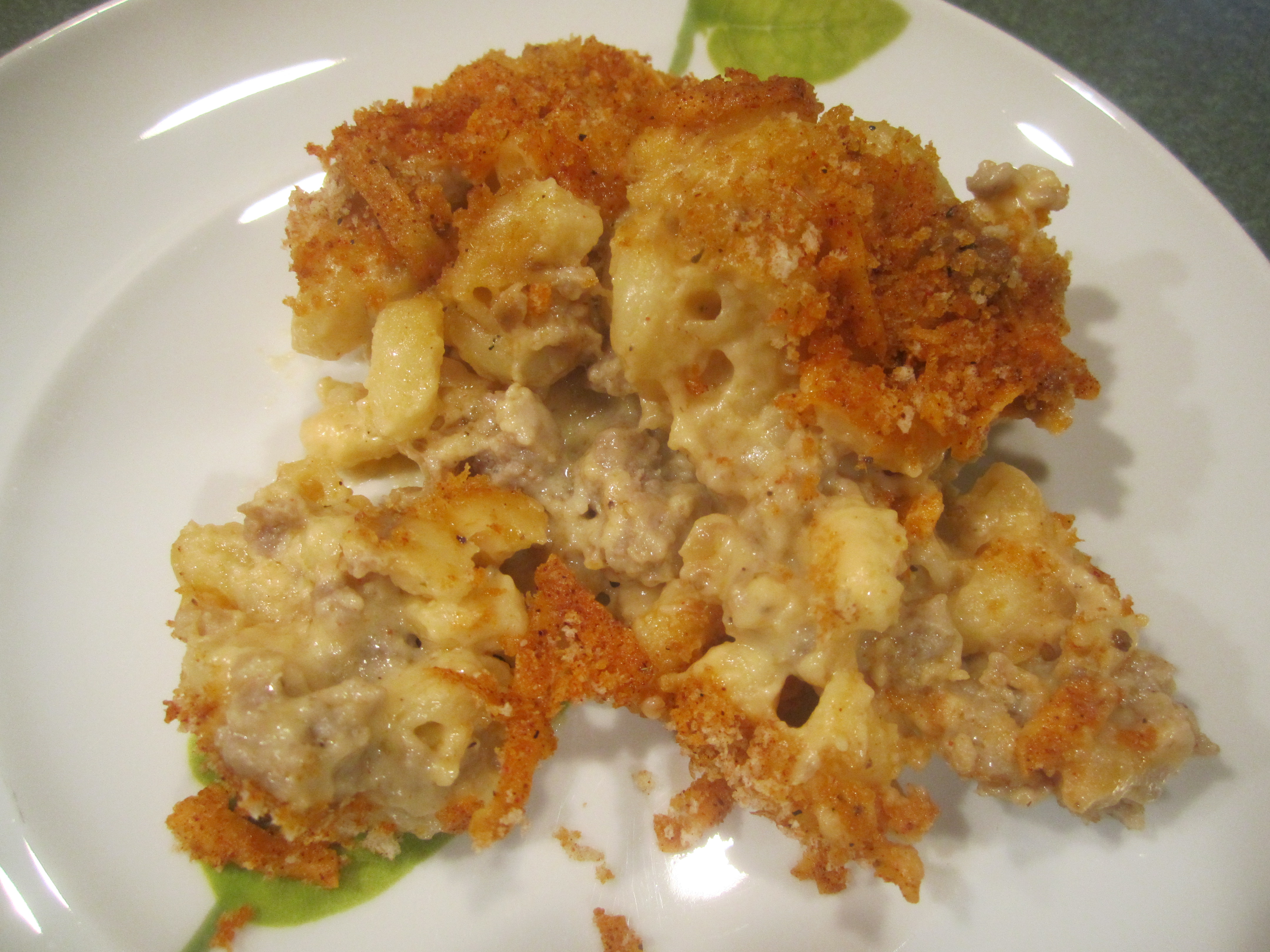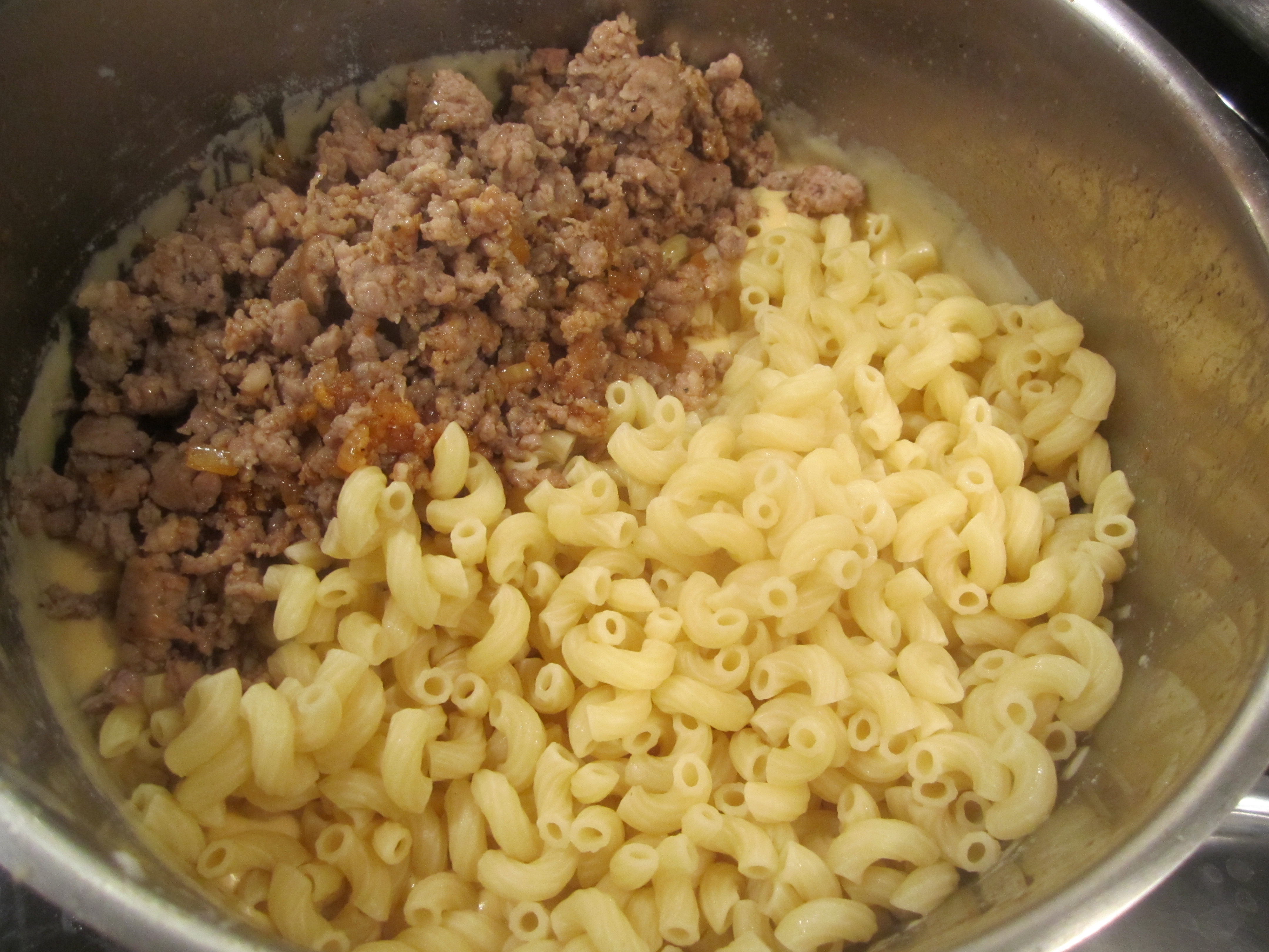 I reduced the amount of butter and flour and used 2% milk instead of whole, to make it a bit more healthy. He calls for all spicy pork sausage but the first time I made it I used 1/2 sweet and 1/2 spicy sausage and the second time I just used sweet sausage. All were good, so your choice on how hot you want it! I also was able to tweak the recipe a bit, to make the dish using just one pot. Always my goal to have less dishes to wash in the evening 🙂