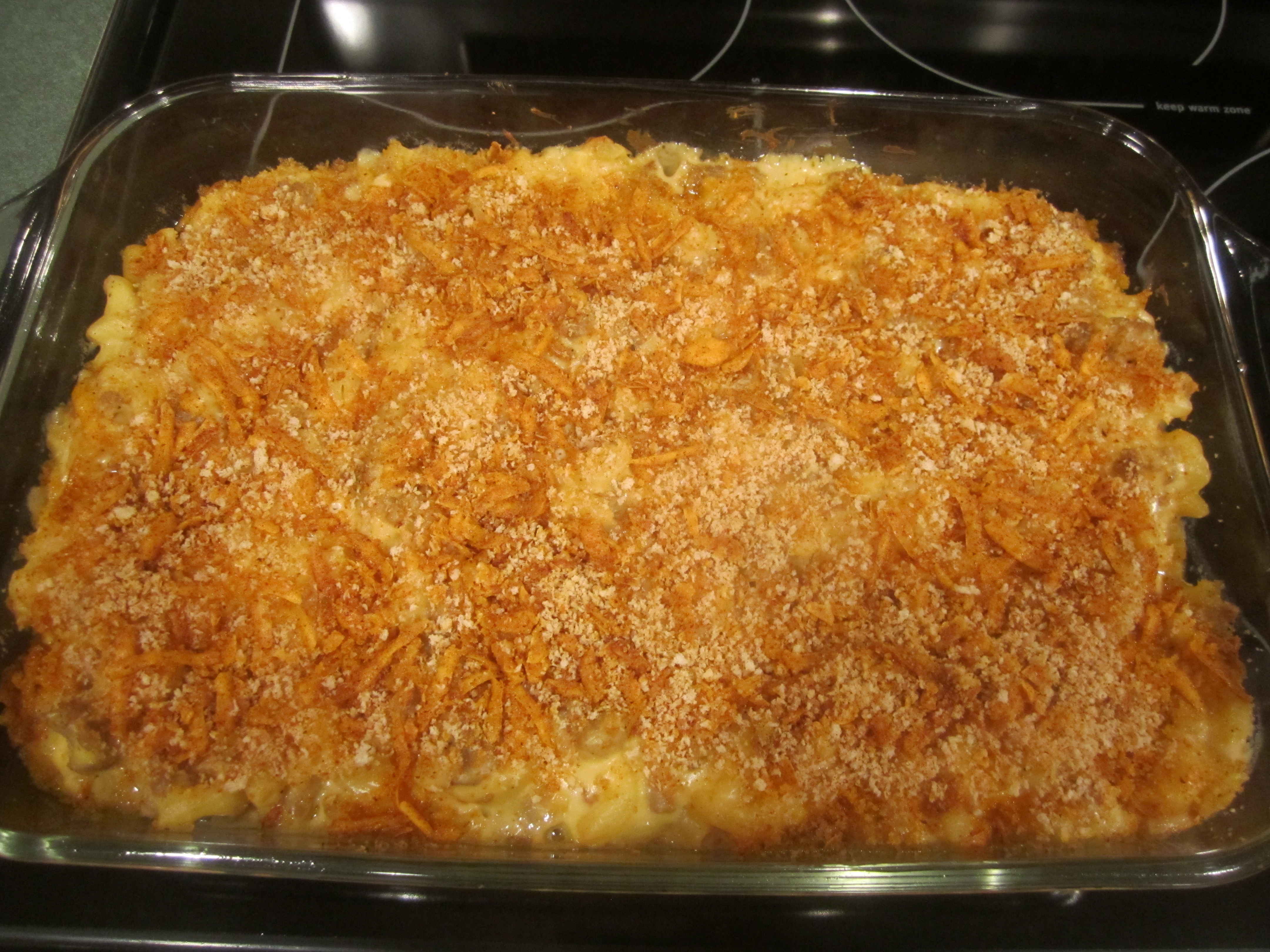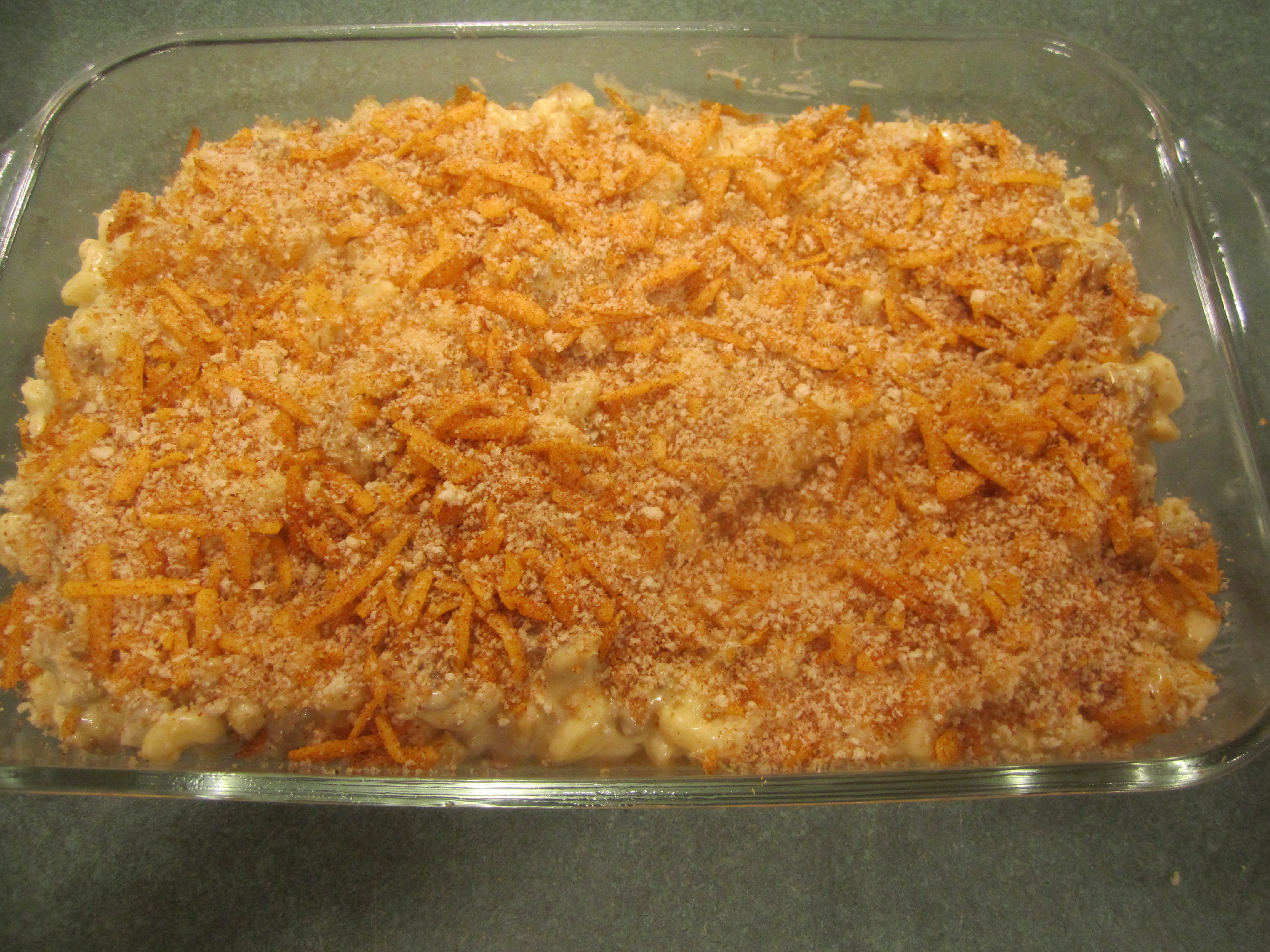 In a small bowl, combine the remaining 1 cup of cheese, breadcrumbs and 2 teaspoon of Essence. Sprinkle over the macaroni. Bake for about 25-30 minutes until golden brown and bubbly.