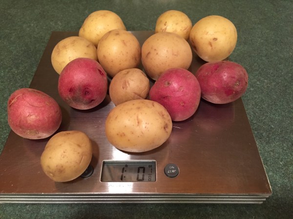 weighing out the potatoes. I had to use a few reds because that was all I could get. That’s why I know they were too soft :