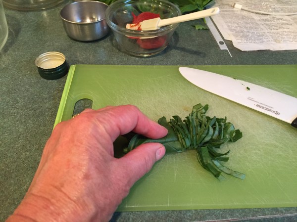 chop basil while this is cooking: chiffonade the basil leaves