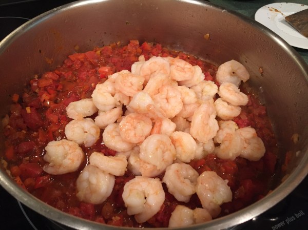 after 10 minutes add shrimp and cook another 3 minutes: