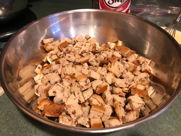 I used 12 ounces of Cinnamon Bread, unsliced, from Hannaford’s Supermarket: no.