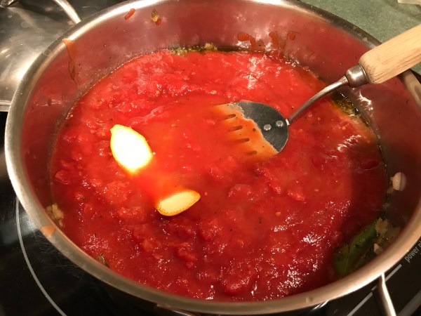 I tweaked a little bit on the recipe but not much: I used crushed tomatoes instead of whole tomatoes. They get crushed anyway in the recipe, so why add another step? I omitted Rosemary and Red Pepper Flakes because I’m not a fan but please feel free to add them if you like. The quantities are in the original recipe that has been linked. And don’t omit the Feta Cheese OR the Mint. I think it finishes off this dish perfectly.