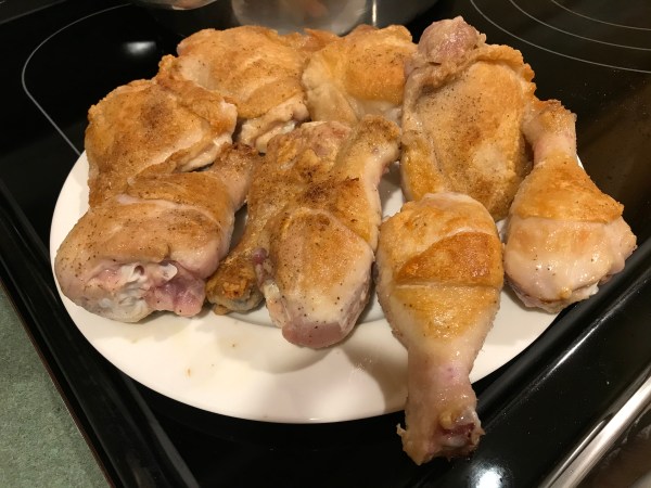 2 chicken breasts, with skin and bones (I used 5 drumsticks, with skin and bones, personal preference)