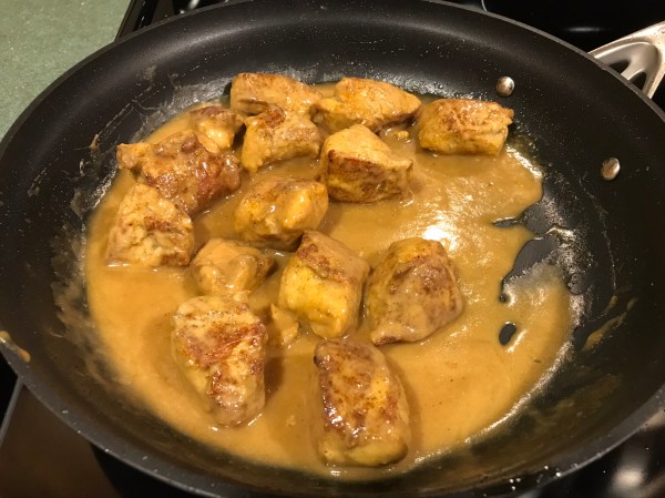 I almost followed the recipe exactly. The only thing I did differently was to cook the pork pieces separately and set aside. Pork tenderloin is very tender and if overcooked, becomes dry. Not my preference.
